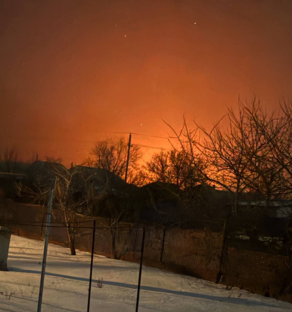 Пользователи соцсетей сообщают, что после взрывов было видно зарево от пожара.