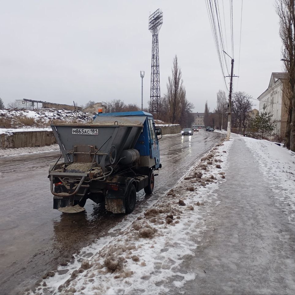 Техника МУП «Дорожно-эксплуатационная служба» продолжает работать на улицах города без остановки. Посыпочные машины, «Мультикар», бригады рабочих. Но, повторюсь, при такой погоде обработать всё одномоментно невозможно.