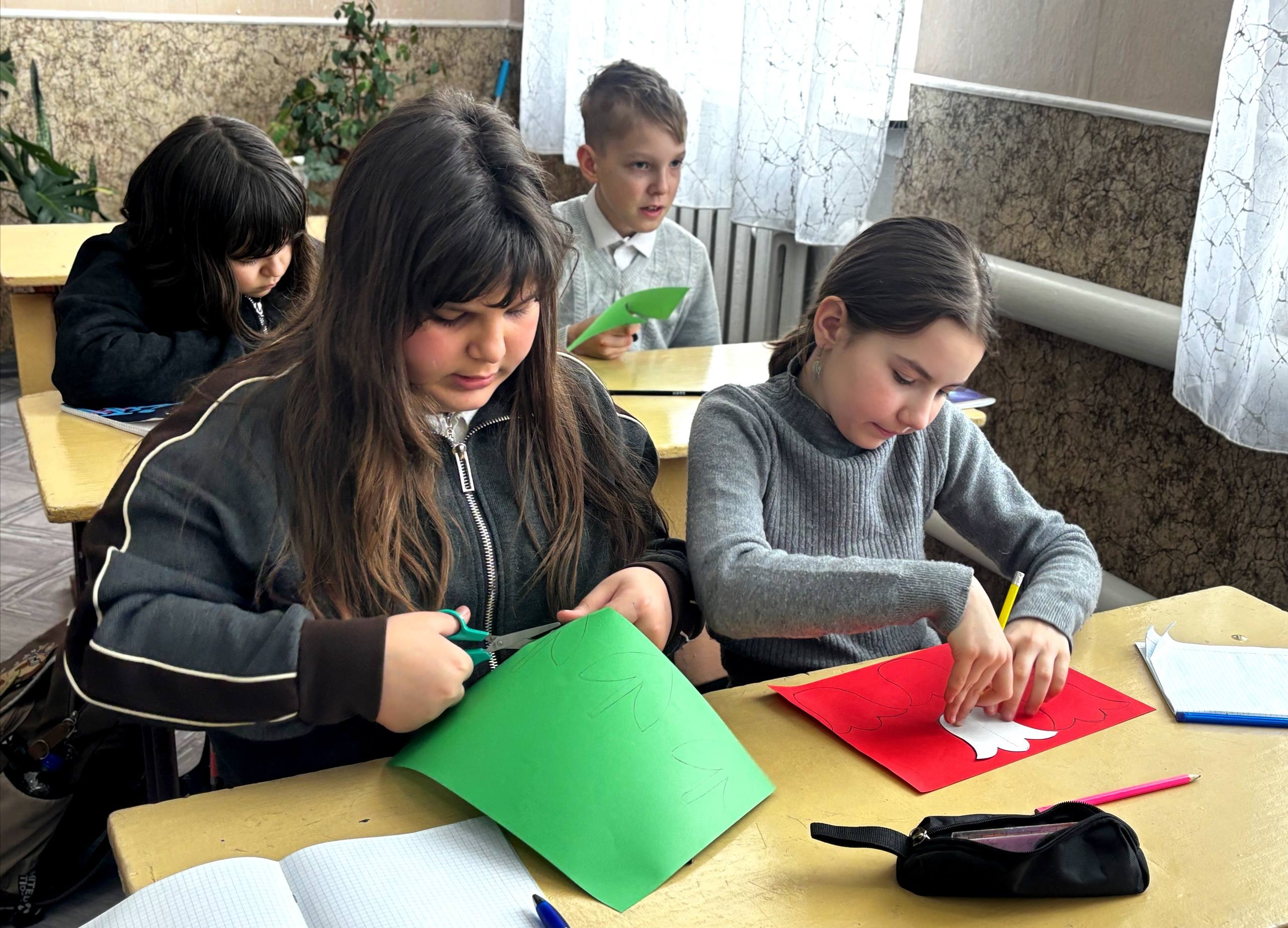 К акции также присоединились и в Ровеньковской школе № 12 им. В.Ю. Андреева. Ребята изготовили своими руками красные тюльпаны, ставшие символом благодарности воинам-интернационалистам.