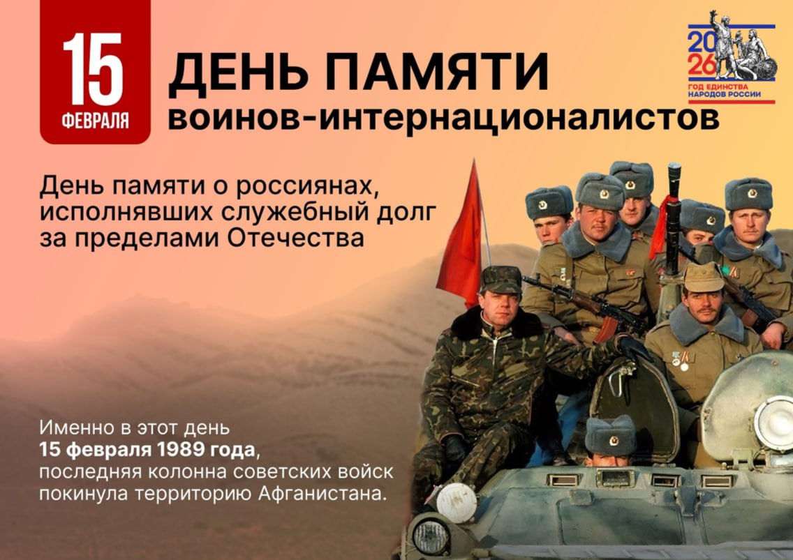 День 15 февраля — это дань памяти всем погибшим воинам-интернационалистам и выражение глубокого уважения и благодарности всем вернувшимся домой.
