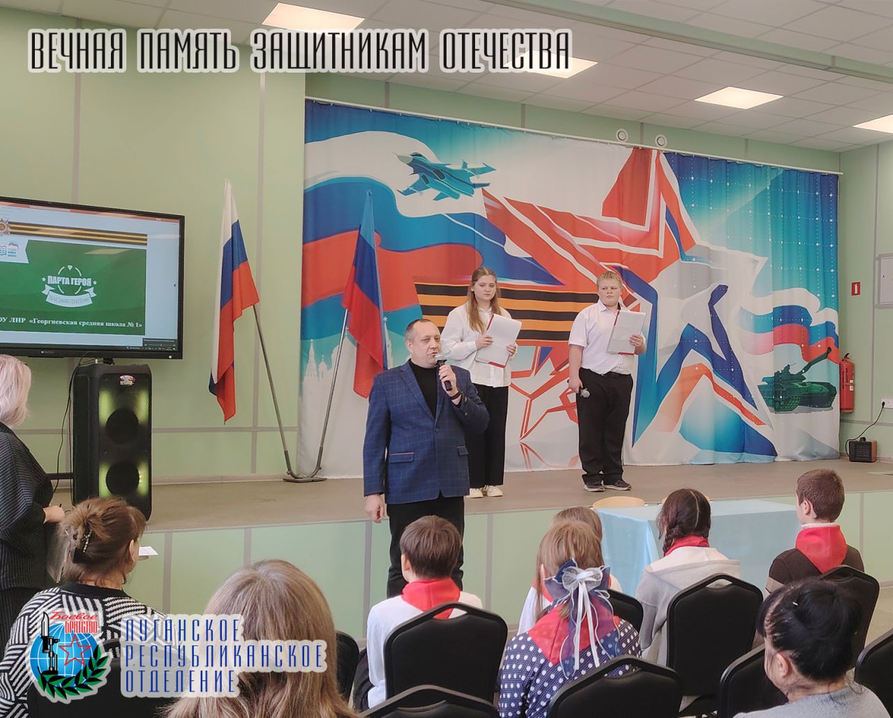 29 января Осипов Юрий Михайлович представитель Луганского республиканского отделения Всероссийской общественной организации ветеранов «БОЕВОЕ БРАТСТВО»; помощник депутата Народного Совета принял участие в торжественном открытии «Парты Героя» в Георгиевской средней школе №1 в честь Акименко Адриана Захаровича.