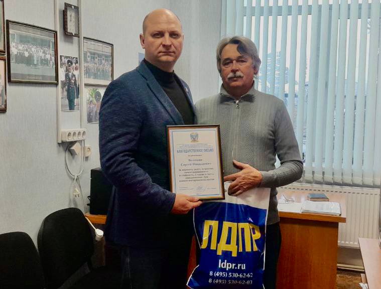 В ходе встречи Сергей Иващенко вручил благодарственное письмо от координатора Луганского регионального отделения ЛДПР Максима Уварова. Награда вручена за верность долгу, мужество, самоотверженность и стойкость, а также в честь празднования памятной даты.