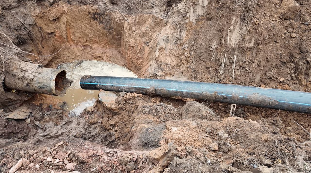 «Меняем 700 миллиметров на 400-ку. 40 метров под дорогой. Делаются две блинды, санация по трубе под дорогой, ставятся муфты и идёт врезка. Мы совместно работали с Краснодонским департаментом. Они с одной, а мы с другой стороны. Этот водовод идёт со «194 отметки» на Климовский распределительный узел. Это аварийные работы, но мы к ним готовились. Приготовили муфты, катушки, фланцы. Потом воду быстренько выкачали с трубы, осушили все приямки, произвели замену этого участка. С нашей стороны работали 7 человек»