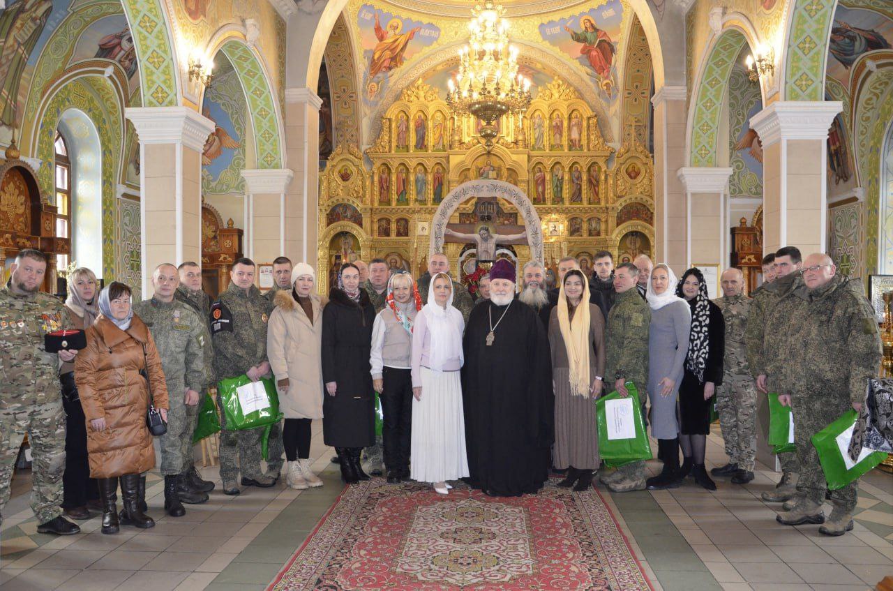 После службы в тёплой обстановке мы обратились к нашим защитникам и их семьям. Мужчинам пожелали сил и стойкости, а женщинам - терпения и непоколебимой веры. Каждый воин получил памятный подарок от Женского движения «Единой России».