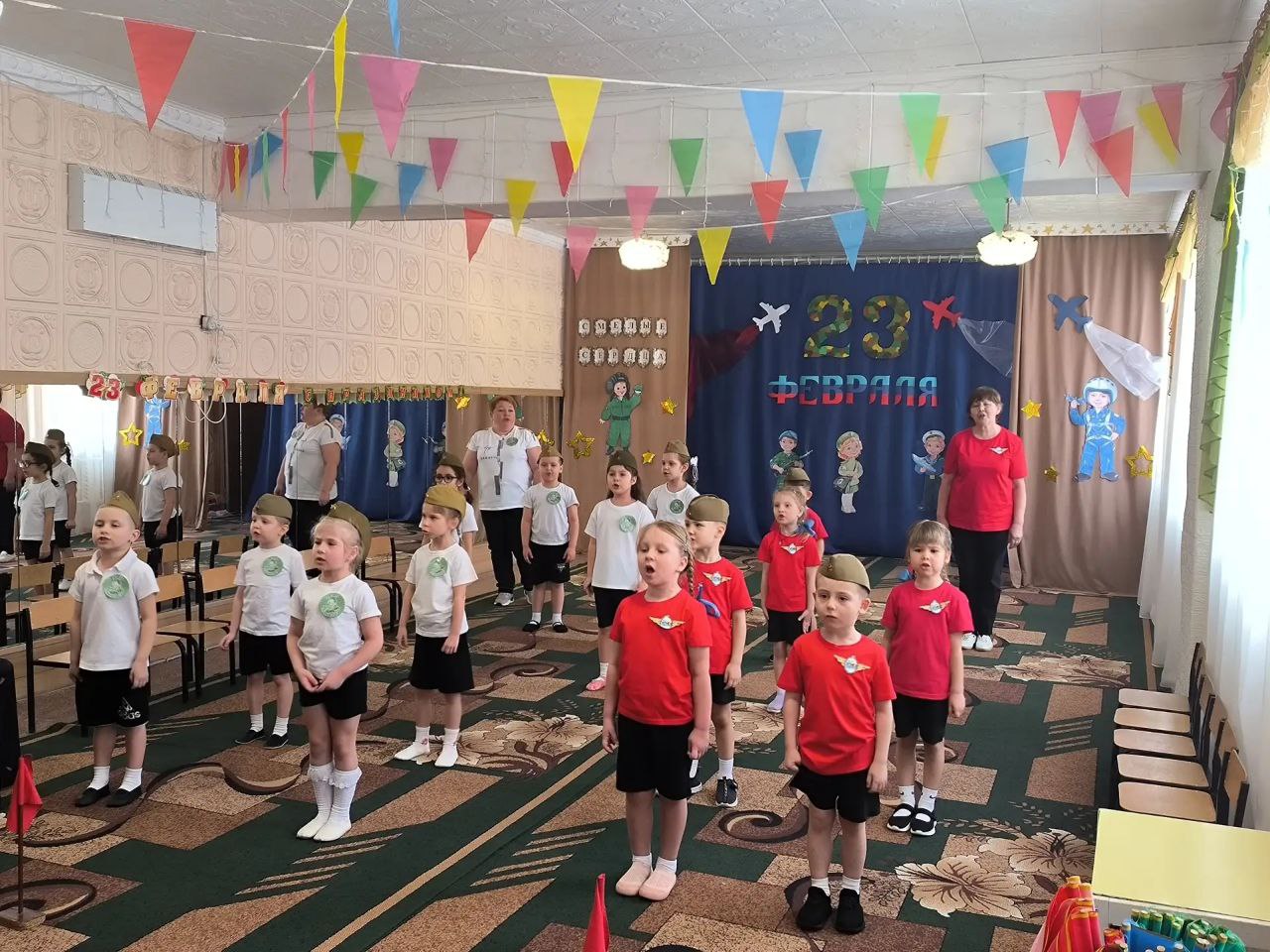 Кроме эстафетных испытаний дети прочитали стихи и поздравили всех мужчин и мальчиков, как будущих защитников, с праздником, и исполнили песню «Солдат молоденький».