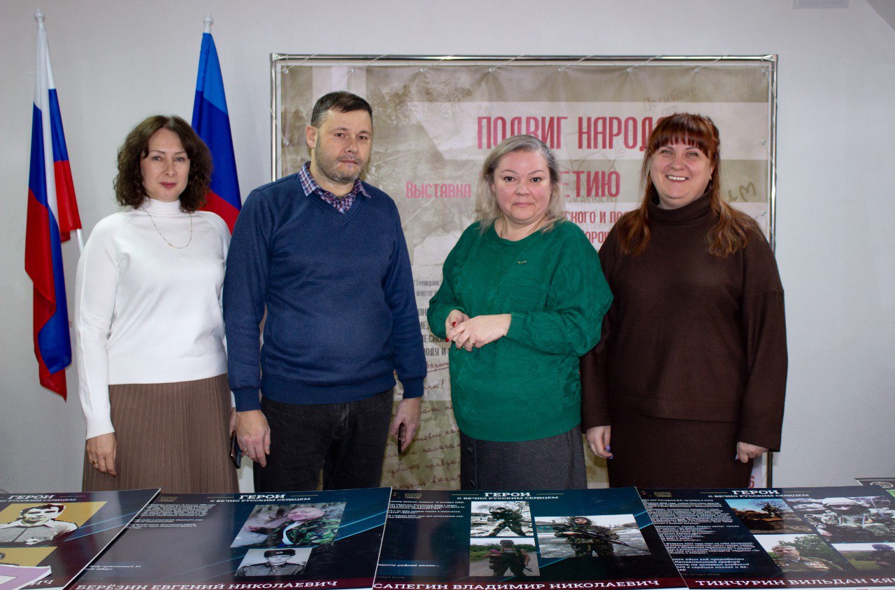 24 февраля директор Республиканского центра туризма, экологии и краеведения «Возрождение» Борис Портной передал первому руководителю Архивной службы ЛНР Юлии Бурлуцкой стенды фотовыставки «Герои с вечно русским сердцем», на которых представлены истории подвига участников СВО, наших земляков. Также были на хранение были переданы автобиографии участников СВО.