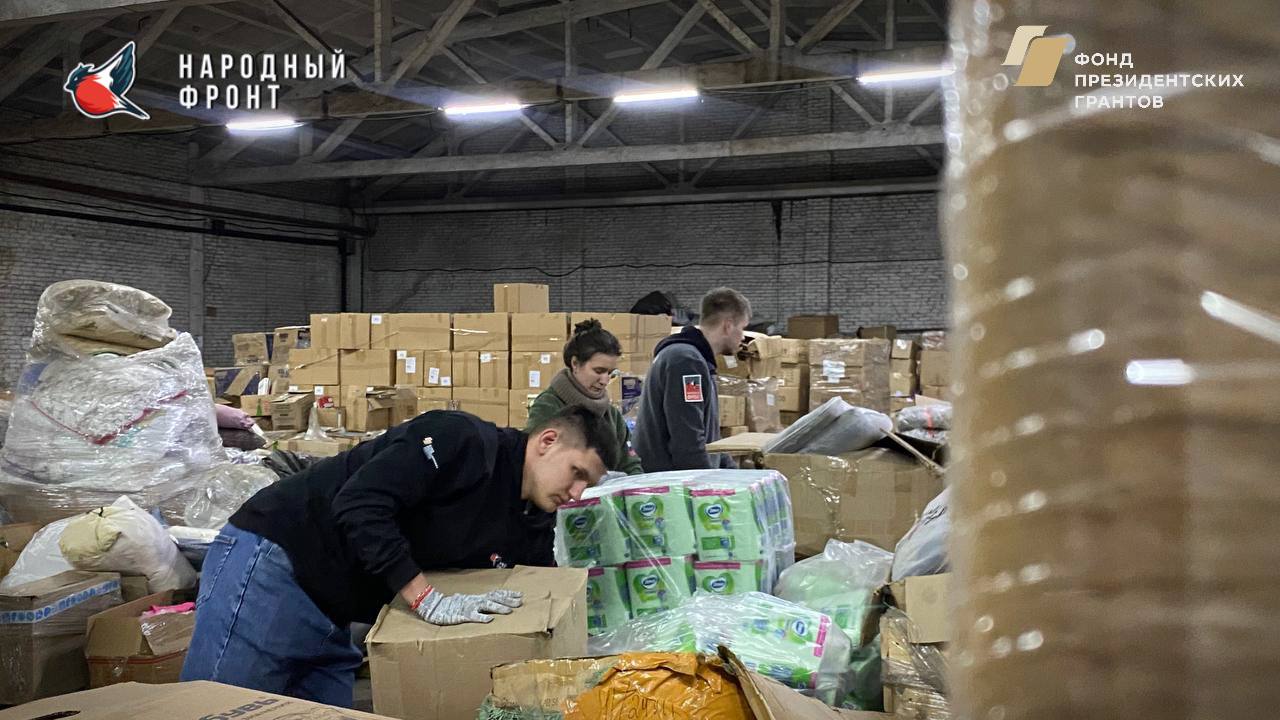 Актив Молодёжки НФ ЛНР сегодня активно трудится на складе РИК НФ ЛНР!