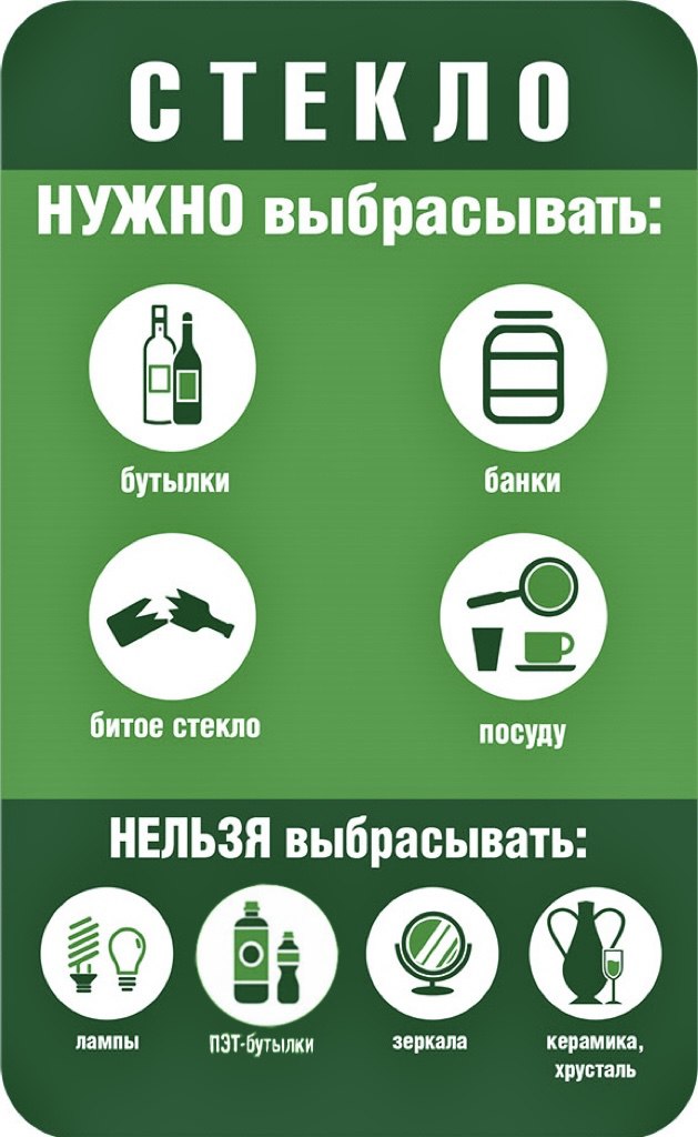 для сбора СТЕКЛА установлены ОТДЕЛЬНЫЕ КОНТЕЙНЕРЫ.