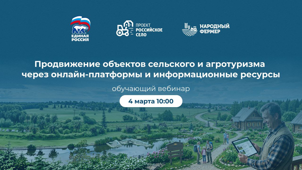 Федеральный проект «Российское село» партии «Единая Россия» при поддержке ассоциации «Народный фермер» проводит обучающий вебинар по продвижению объектов сельского и агротуризма через онлайн-платформы и информационные ресурсы.