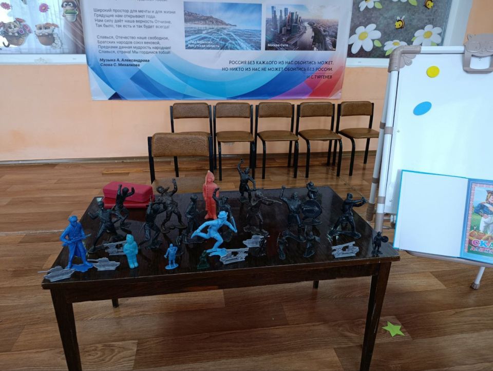 Мальчишки и девчонки познакомились с коллекцией игрушечных солдатиков из фондов Чернухинского музея и прослушали сказку «Стойкий оловянный солдатик».