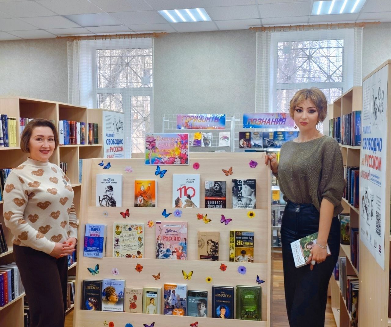 Выставка работает ежедневно с 9:00 до 17:00 по адресу: ул. Ленина, 40. Сотрудники библиотеки поздравляют всех женщин с праздником весны!