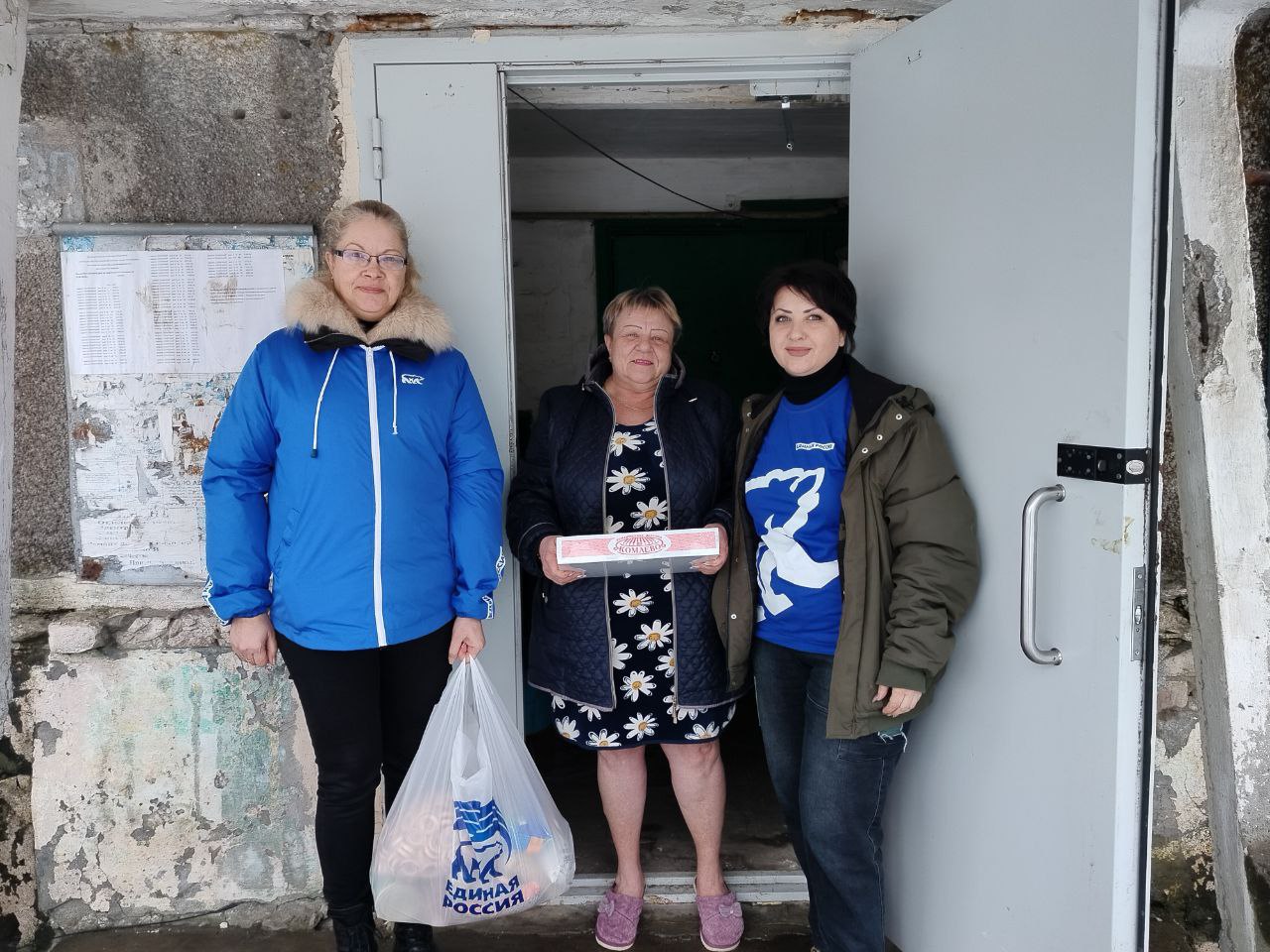 Проанализировав ситуацию этих женщин, единороссы просто не могли остаться в стороне. Общими усилиями собрали наборы, которые включили в себя продукты питания первой необходимости, консервацию и сладости. Также к поздравлениям присоединились бойцы Отдельного гаубичного артиллерийского дивизиона под командованием Дмитрия Ноды - они передали женщинам по коробке вафельных трубочек со сгущенным молоком.
