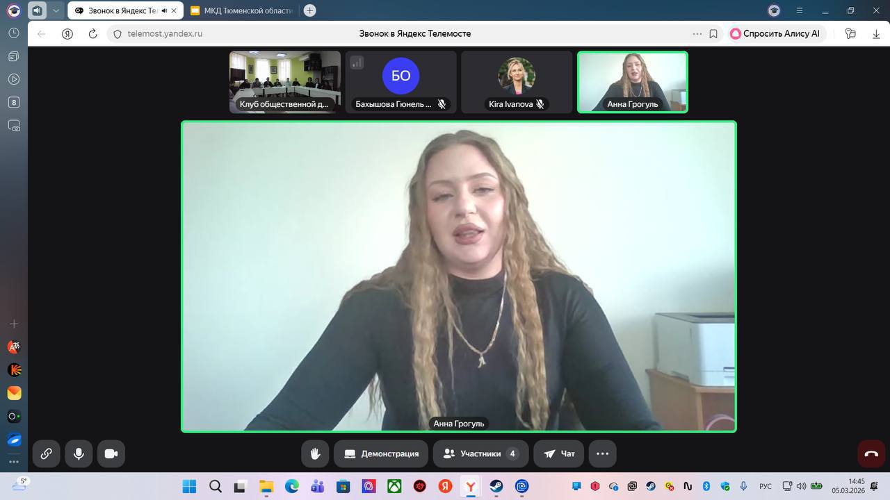 Состоялось также выступление руководителя Международного клуба дружбы Тюменской области (г. Тюмень) Бахышовой Гюнель и директора Центра молодежной дипломатии ЛЕГАТУС (г. Донецк) Анны Грогуль.