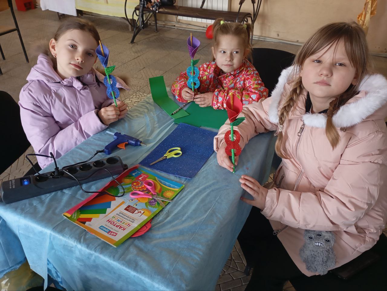 Под руководством заведующей Грибовахского сельского клуба участники мастер-класса сделали поздравительный цветок- сувенир .