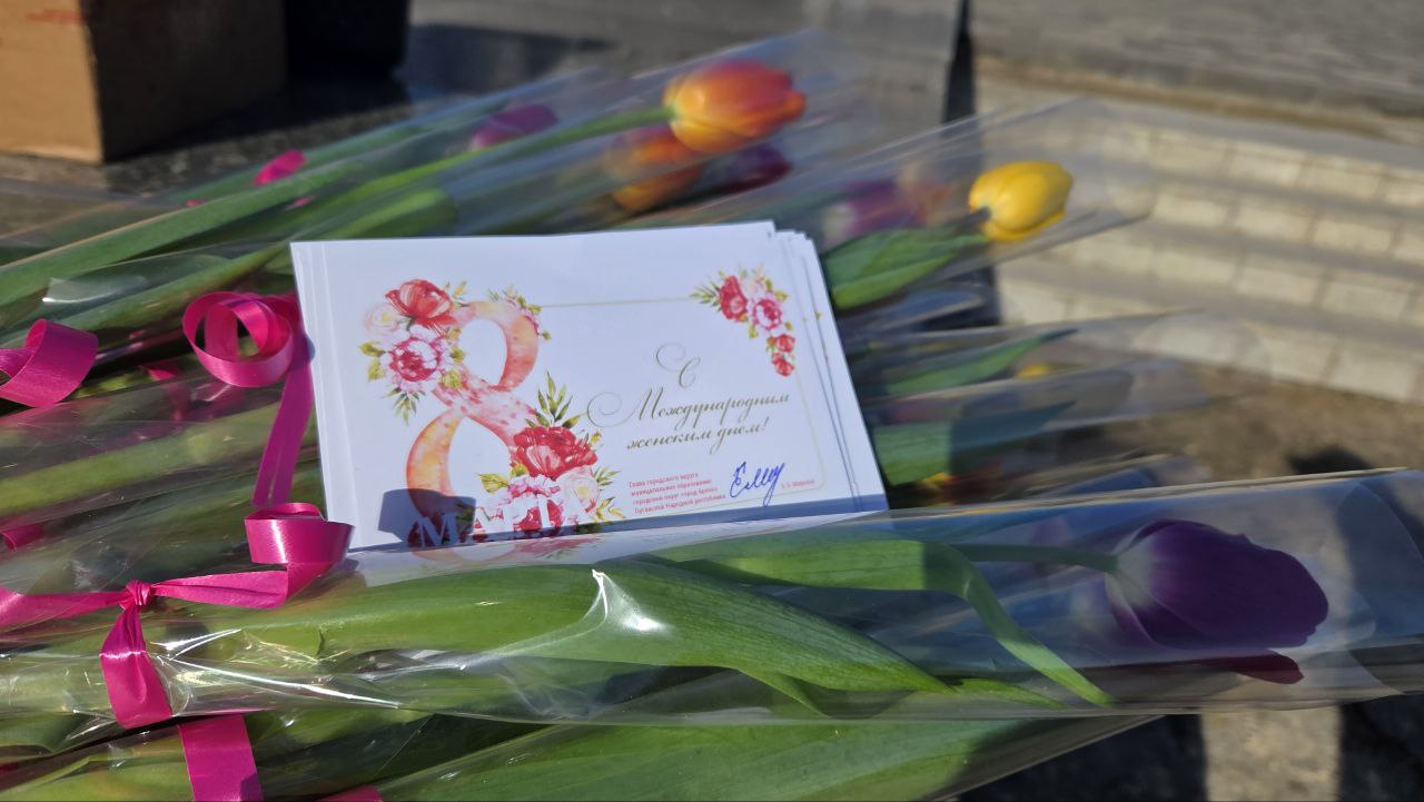 Сотрудники ГИБДД напомнили женщинам о безопасности на дорогах, пожелав легких и зеленых улиц, а молодежь добавила к этому море улыбок и весеннего настроения.