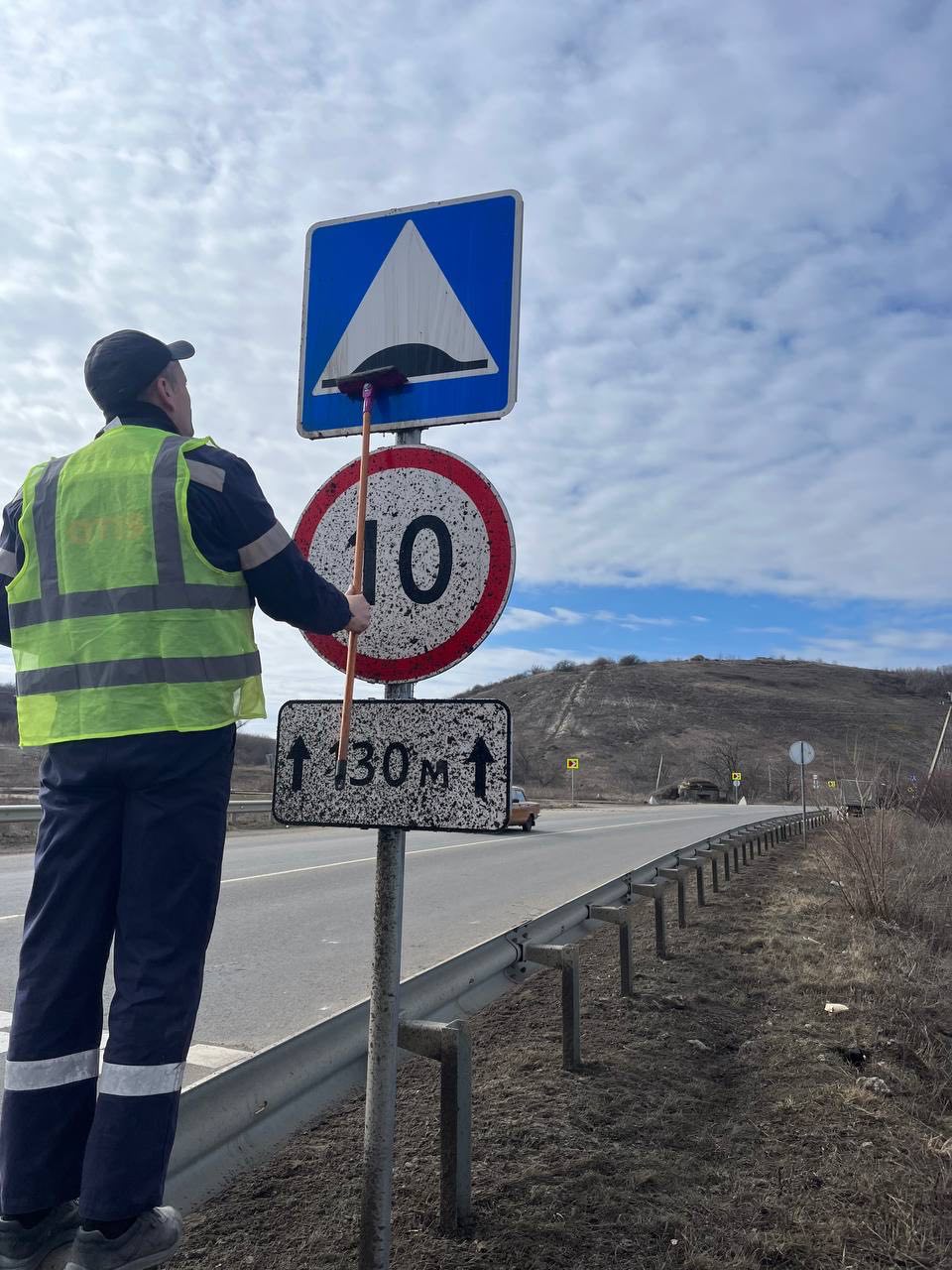 На трассе Северодонецк – Новоайдар провели работы по очистке дорожных знаков и сигнальных столбиков