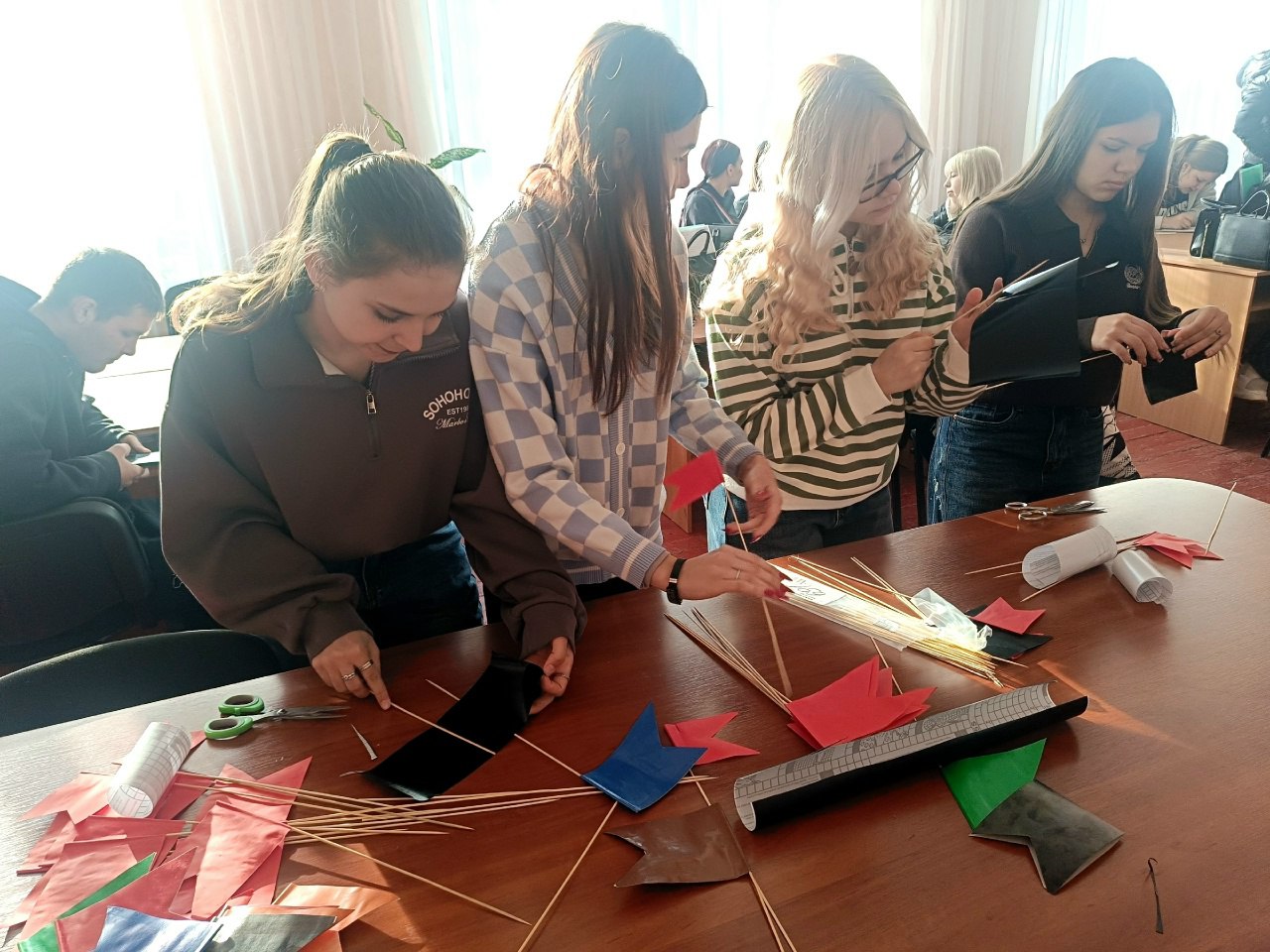 Сегодня волонтеры Добро.Центра Ровеньковского технико-экономического колледжа провели мастер-класс по изготовлению противоминных флажков — специальных указателей, которые нужны для того, чтобы обнаруженную мину или другой взрывоопасный предмет не потерять из виду.