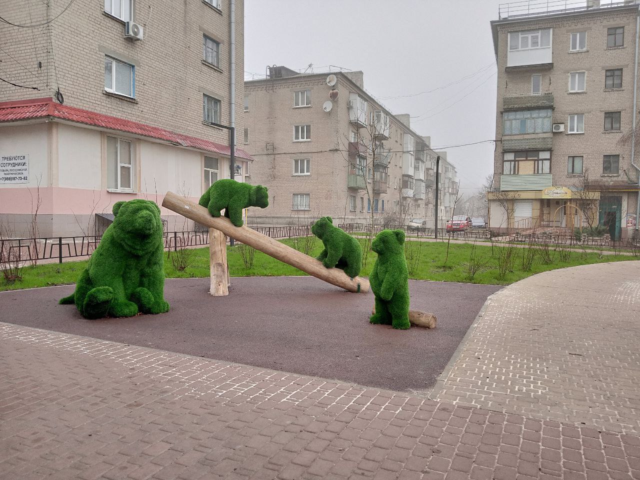 Уважаемые ровенчане! Просим вас бережно относиться к территории и оборудованию, установленному на детской площадке по ул. Ленина. Топиарные фигуры (мишки) являются украшением городской среды, а не объектом для развлечений. Их конструкции рассчитаны только на атмосферные и ветровые нагрузки.