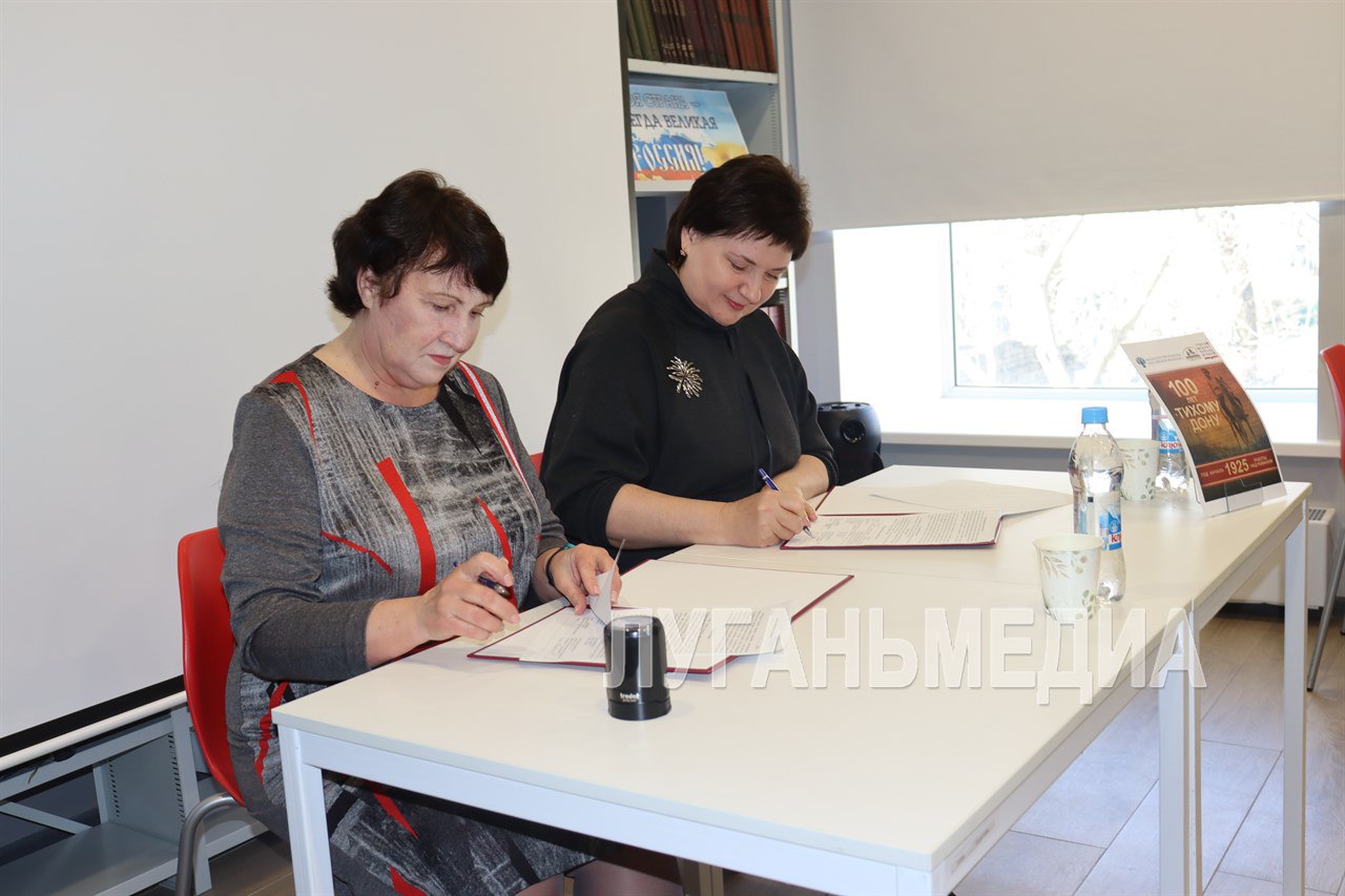 В торжественной обстановке директор Свердловской централизованной библиотечной системы Вера Клейменова и директор Государственного музея-заповедника М.А. Шолохова «Тихий Дон» Ольга Анистратенко подписали соглашение о сотрудничестве.