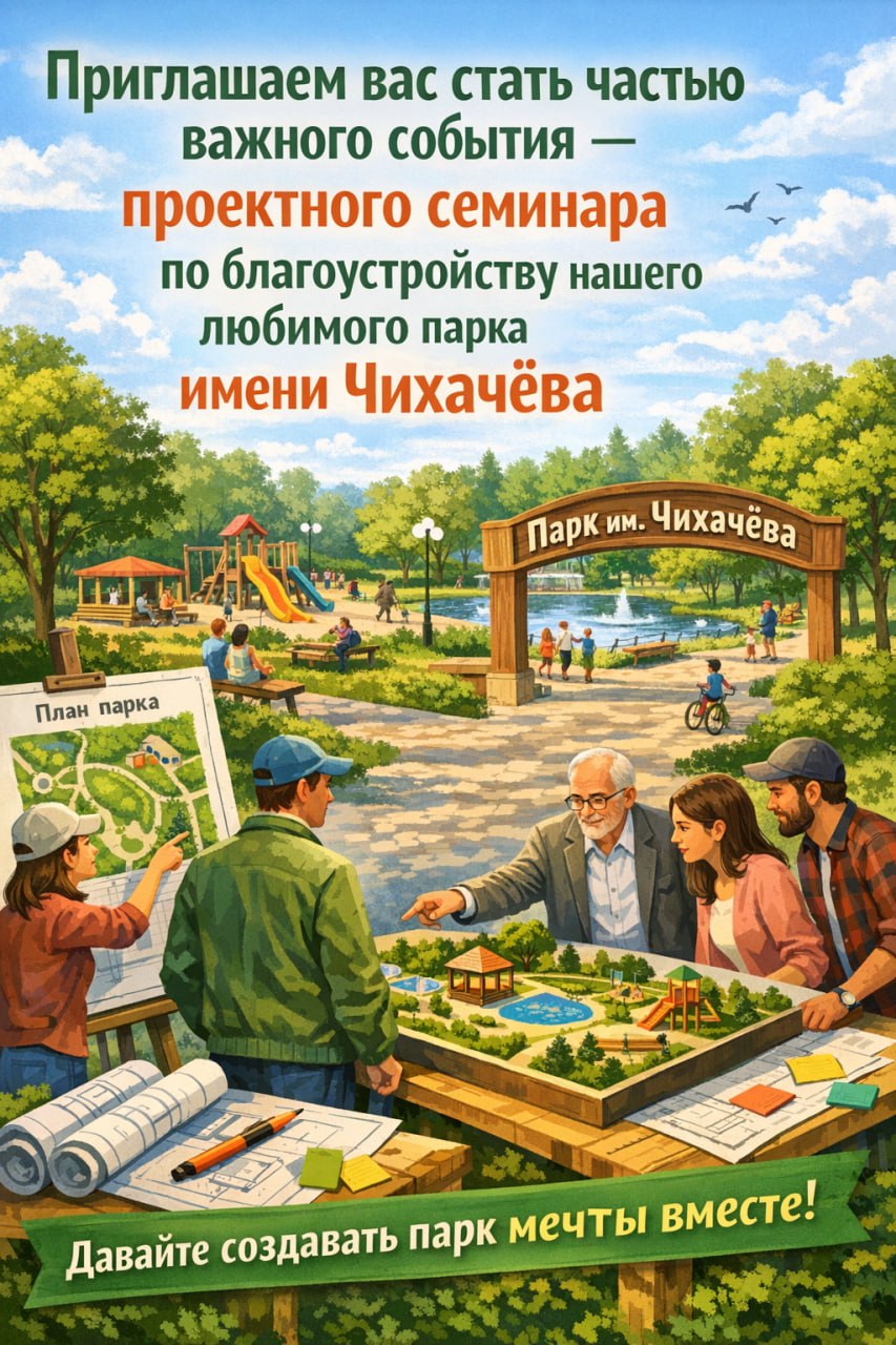 Приглашаем вас стать частью важного события — проектного семинара по благоустройству нашего любимого парка имени Чихачёва!