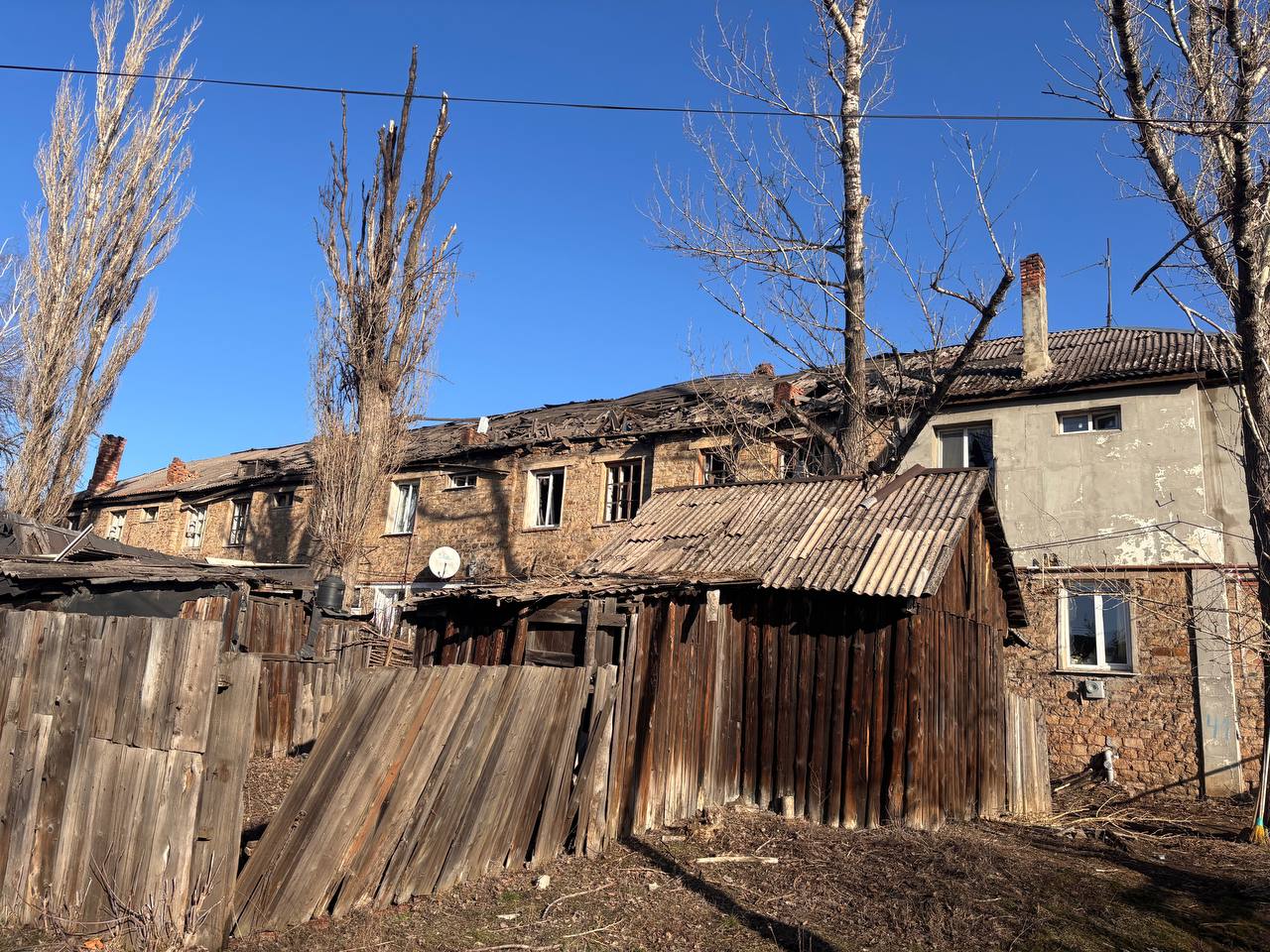 В результате ночного обстрела повреждена кровля многоквартирного двухэтажного трехподъездного дома, выбиты 36 окон.