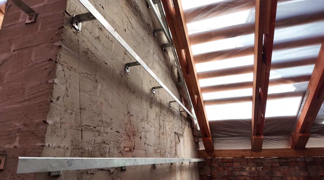 «Делаем сегодня подсистему для обшивки. Привезли нам железо, будем сейчас подавать его. Как выглядит процесс: сначала делается подсистема. Это система кронштейнов, уголков. А потом уже сверху на них идёт каркас. И после этого обшивается нс-8 листом. И тогда приобретается совсем другой вид. Когда мы делаем кровлю, мы думаем не только о её надёжности (это естественно), но и о эстетике. Во всём должна быть красота. К примеру, тут рядом есть похожая крыша, но шахты не обшиты. Смотрится по-другому. А у нас единое целое».
