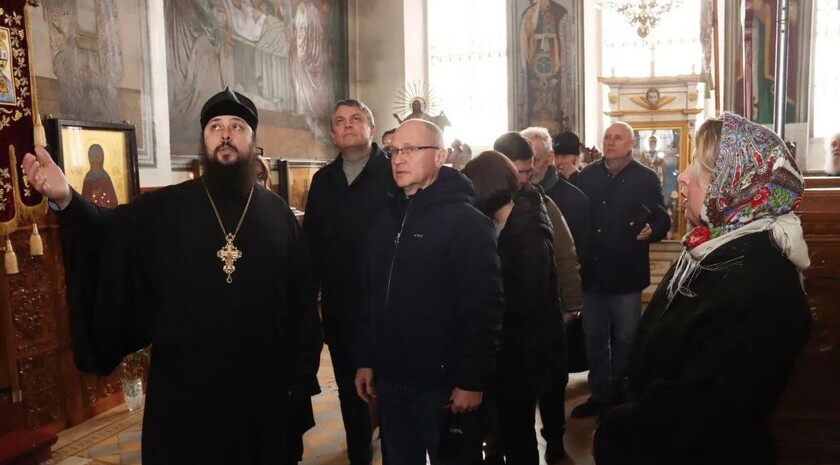 «В Республику с рабочим визитом прибыл первый заместитель руководителя Администрации Президента Сергей Владиленович Кириенко. Вместе посетили Свято-Николаевский собор в Стаханове. Это духовное сердце города. Сейчас здесь проводится реконструкция храма», — написал руководитель региона в своем канале в мессенджере MAX.
