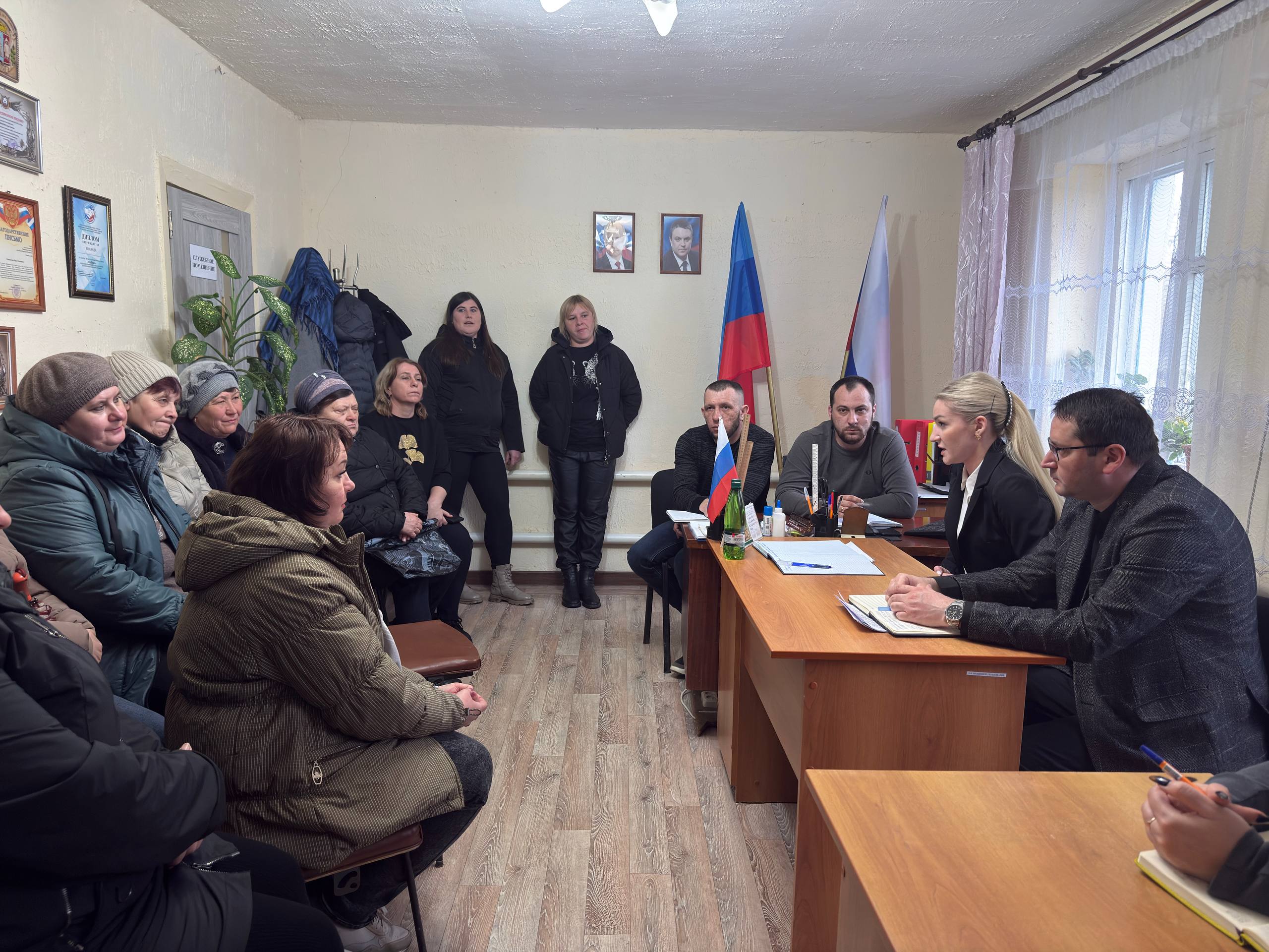 Сегодня врип Главы Марковского муниципального округа ЛНР Ирина Кузьменко совместно с заместителем Главы Андреем Клименко и начальниками структурных подразделений Администрации встретились с жителями ООЖ Гераськовка.