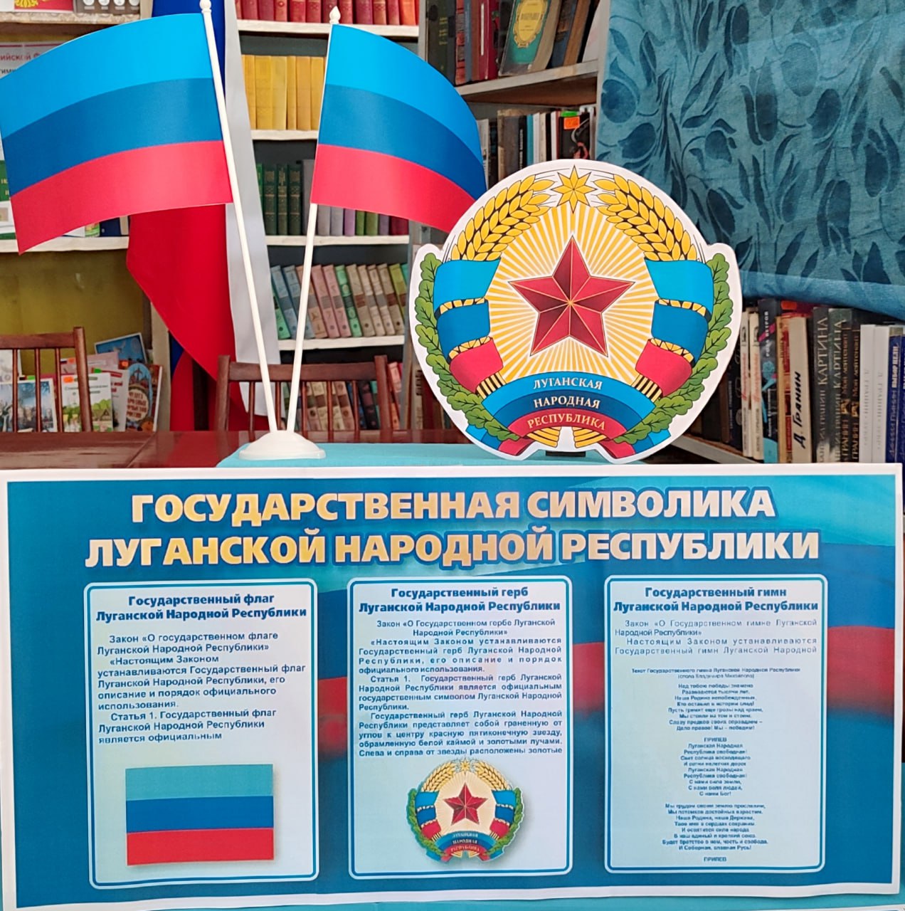 К мероприятию была организована информационная выставка, на которой представлены нормативные акты, книги, мемуары, сборники воспоминаний и материалы, раскрывающие историю создания государственных символов ЛНР, тесно переплетенную с историей Республики.