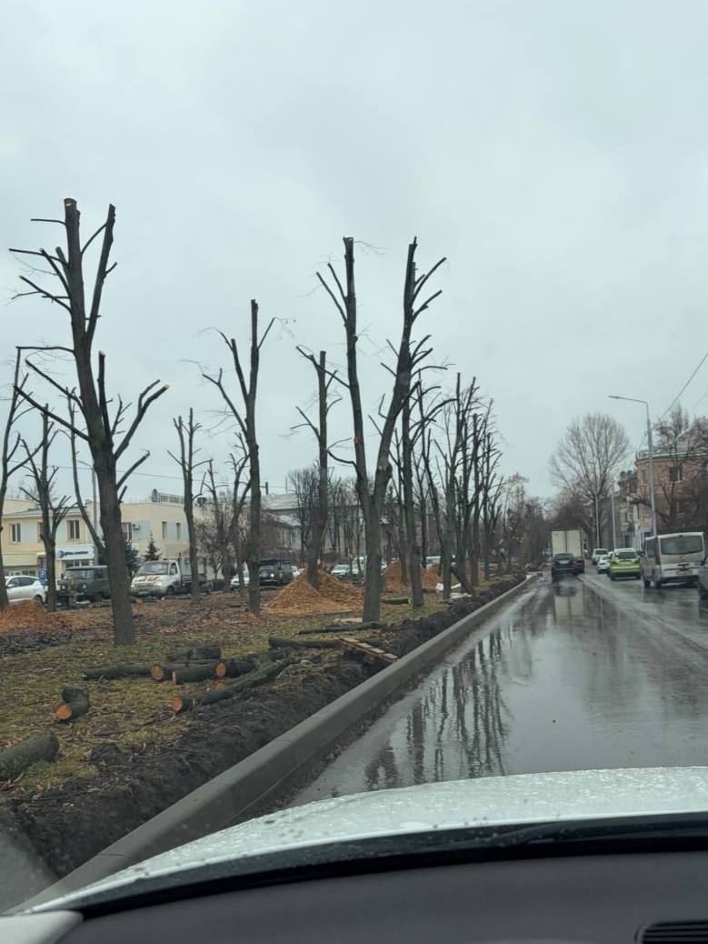 Уже поставили новые бордюры и обрезали деревья.