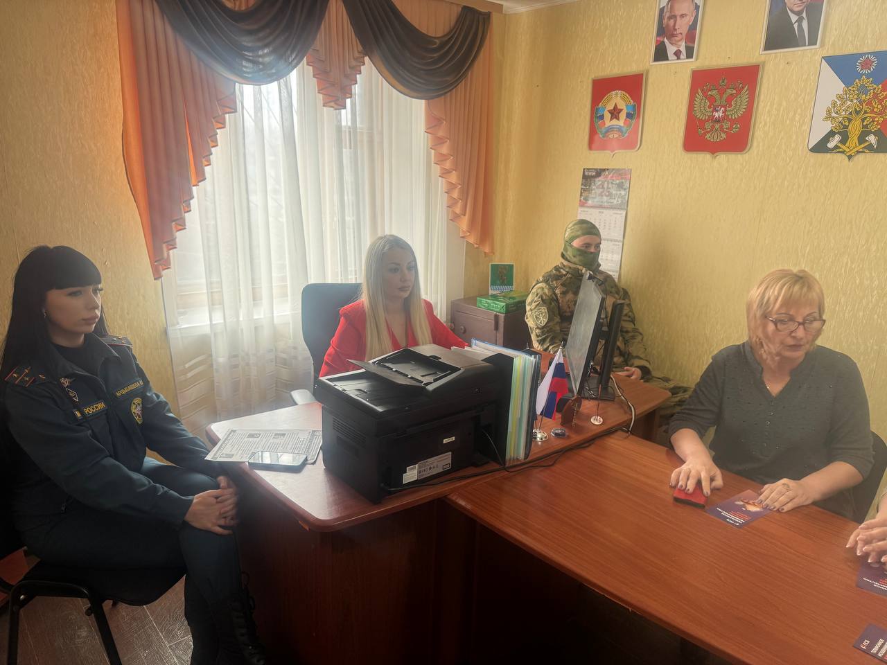 Сегодня в отделе жизнеобеспечения пгт Кленовый состоялась встреча с сотрудниками ПСБ банка, инспектором ОНД и ПР по городу Ровеньки УНД и ПР главного управления МЧС России по ЛНР, сотрудниками отдела чрезвычайных ситуаций, охраны труда и и окружающей природной среды и военнослужащими Росгвардии.
