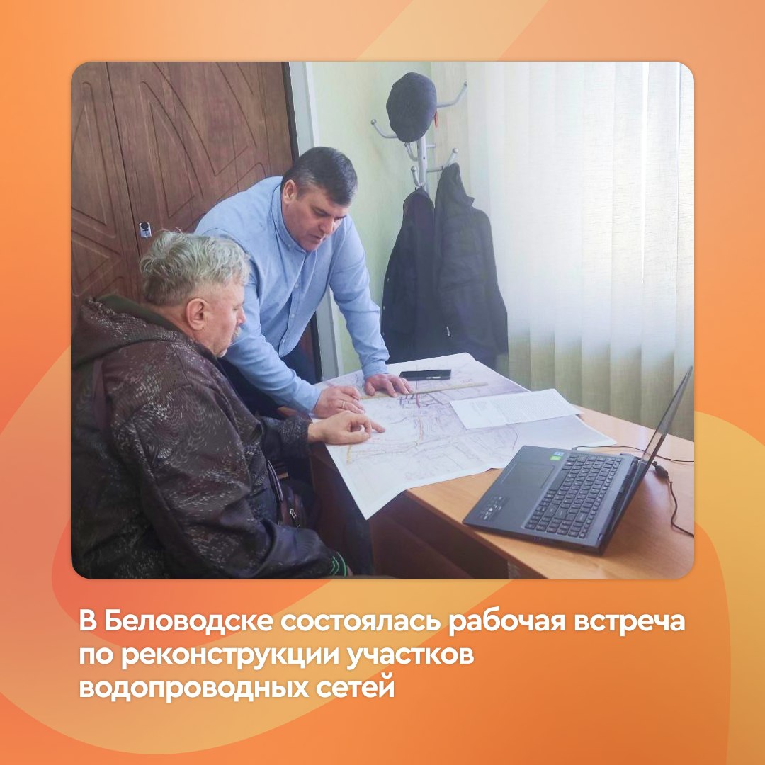 Состоялась рабочая встреча с представителем МУП Беловодского округа "Ремонтно эксплуатационное предприятие" Беловодского муниципального округа по вопросу согласования реконструкции участков водопроводных сетей в поселке городского типа Беловодск. Подробнее читайте https://vk.com/wall-213550425_4727