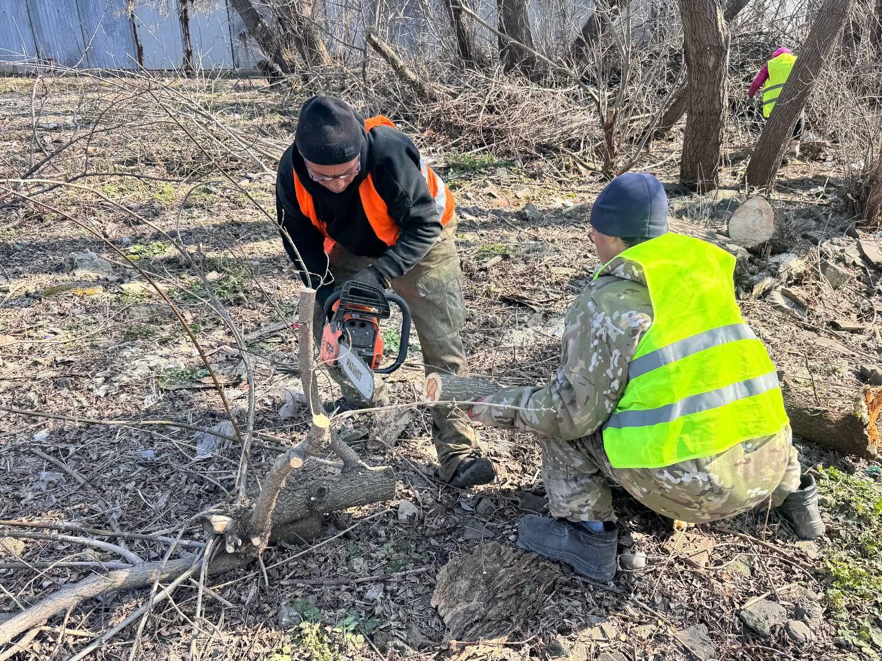 3. Распиловка упавших деревьев и ветвей, повреждённых в результате обледенения в феврале.