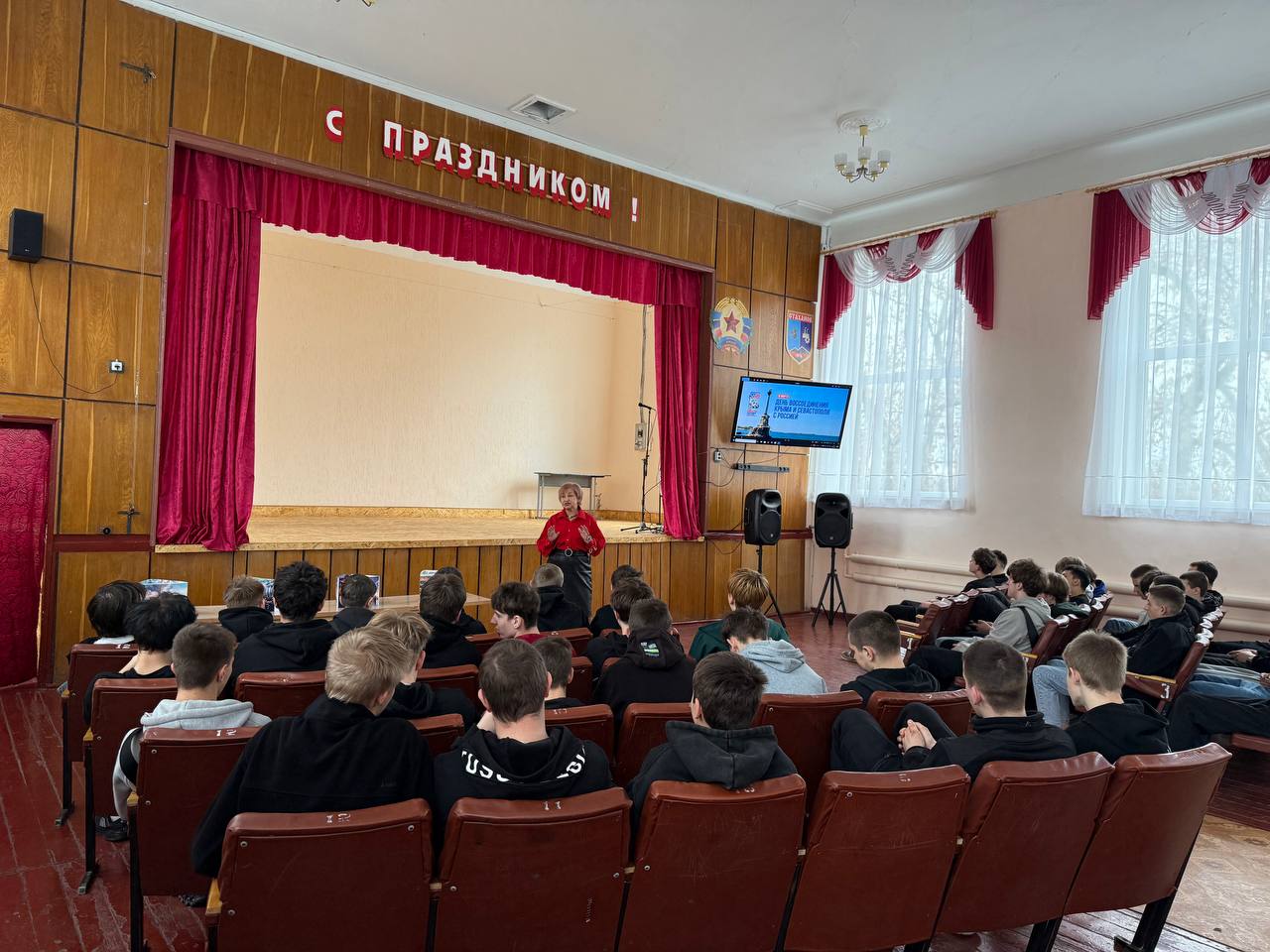 Классный час, посвященный Дню воссоединения Республики Крым с Российской Федерацией, состоялся в Стахановском колледже им. Героя Социалистического Труда К. Г. Петрова.