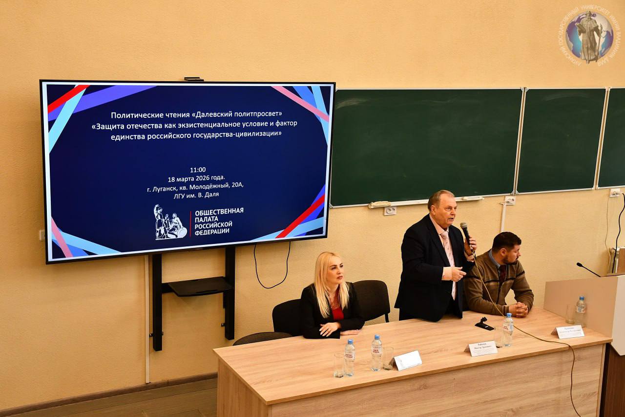 Стены Луганского государственного университета имени Владимира Даля 18 марта стали площадкой для глубокого и содержательного разговора. Здесь состоялись очередные политические чтения «Далевский политпросвет» на тему: «Защита Отечества как экзистенциальное условие и фактор единства российского государства-цивилизации».