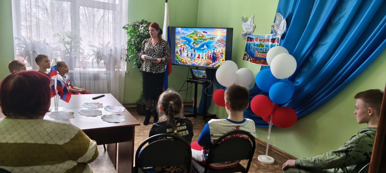 Ведущая подробно рассказала о том, что Крым не раз становился ареной острой политической и военной борьбы. Презентация сопровождалась подборкой архивных фотографий, карт и видеоматериалов, которые наглядно иллюстрировали ключевые этапы: подготовку и проведение референдума, официальное оформление вхождения Крыма в состав России и общественнополитическую динамику того периода. Это позволило присутствующим более наглядно представить себе исторические события и ощутить их значимость.