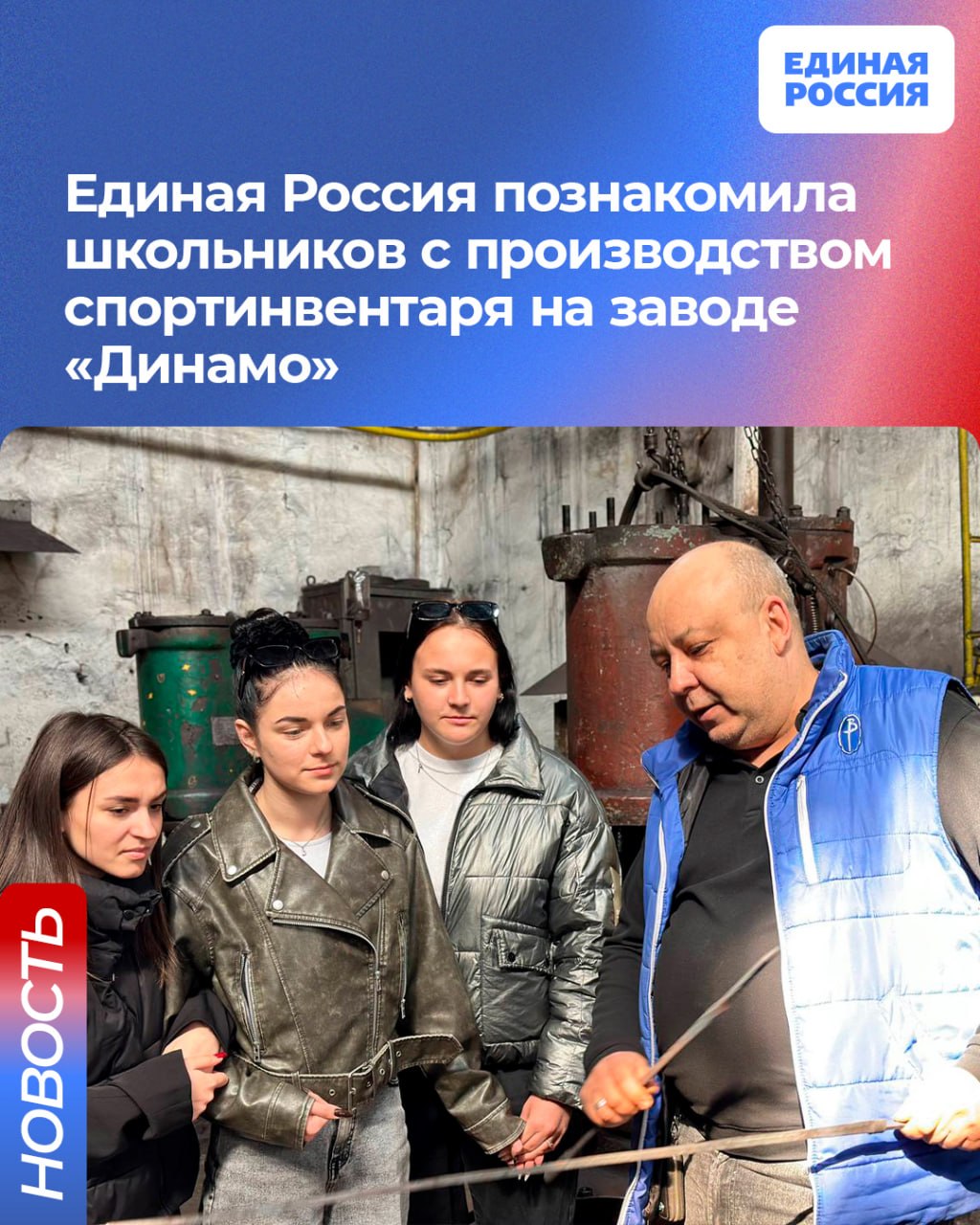 Единая Россия познакомила школьников с производством спортинвентаря на заводе «Динамо»