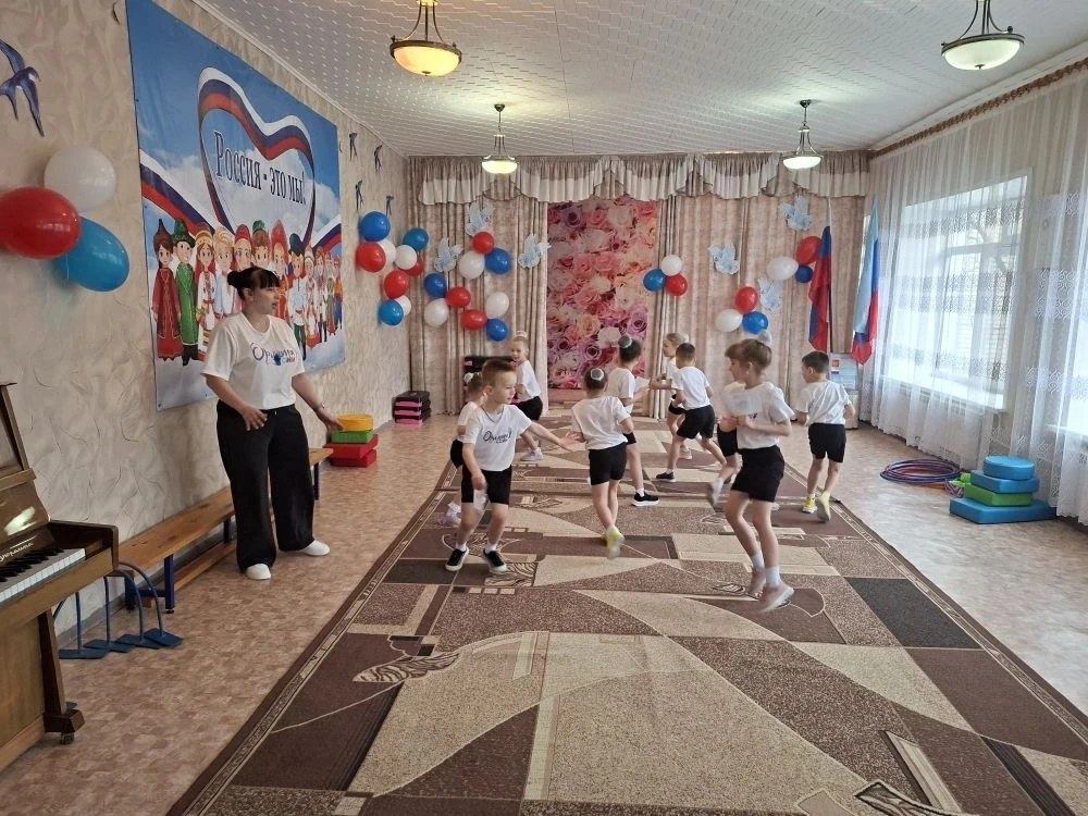 Ребята совместно с музыкальным руководителем подготовили для гостей учреждения танцевальную композицию на степ платформах "Планета детства".