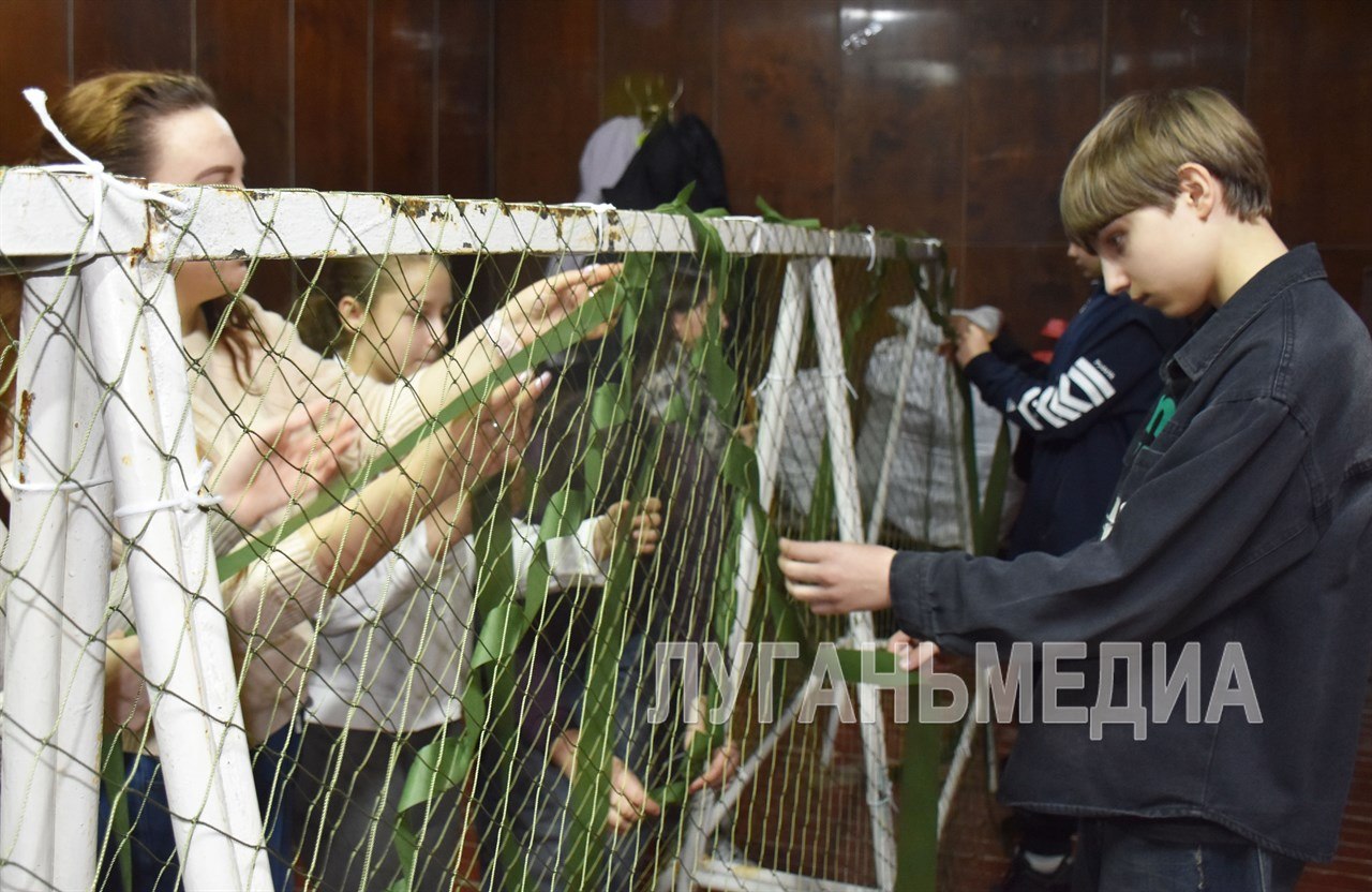 Мастер-класс по плетению маскировочных сетей провели для школьников волонтеры Брянки