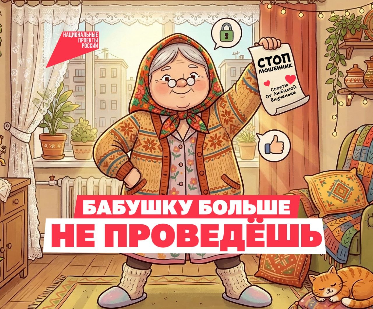 В карточках наглядный пример, как можно уберечь старшее поколение от обмана. А пока вы их листаете, нацпроект «Экономика данных» помогает развивать цифровые технологии, которые делают использование телефона и интернета безопаснее.