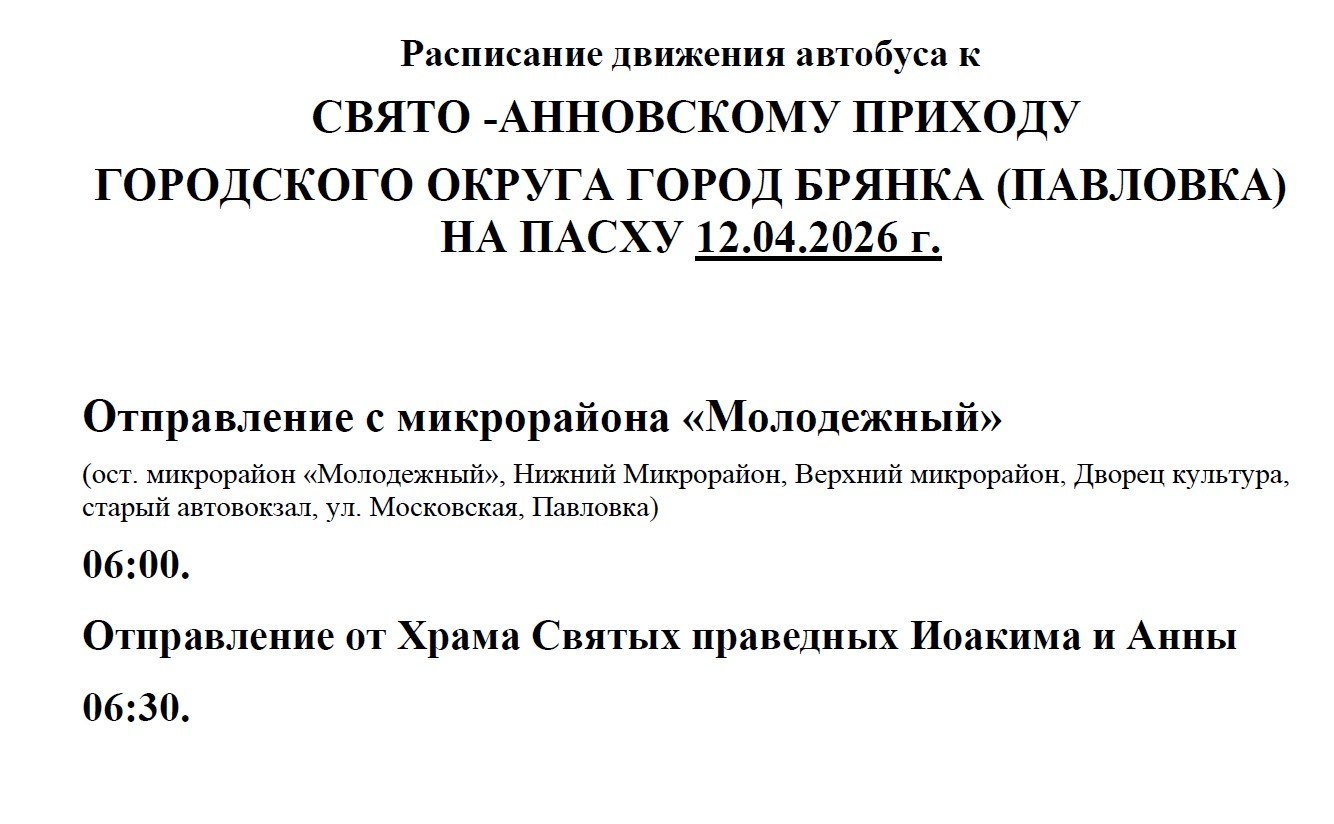 Расписание движения автобусов к православным храмам города на Пасху