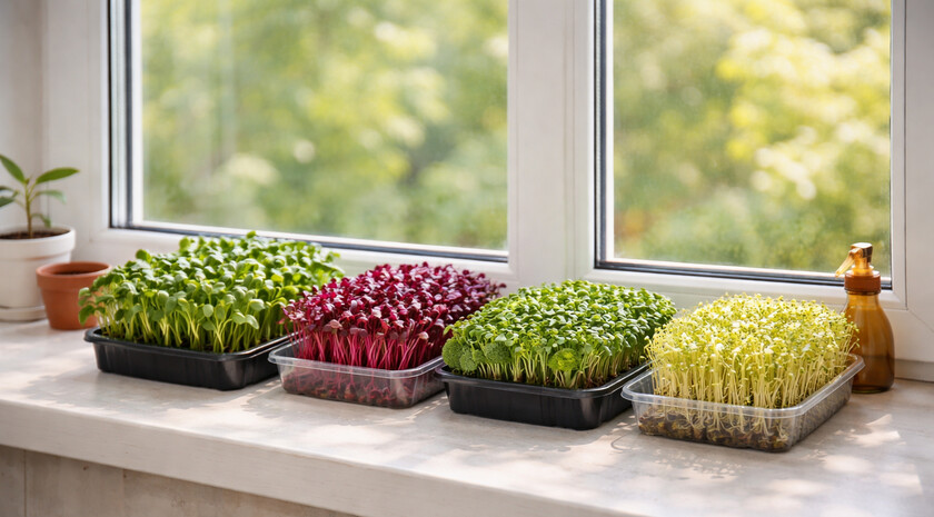 Отмечается, что быстрее всего всходят простые и неприхотливые культуры. Уже через несколько дней результат дают редис, кресс-салат и горчица. Кресс-салат — абсолютный рекордсмен по скорости. Он может прорасти за 2–3 дня и уже через неделю быть готовым к срезке.