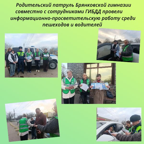 Родительский патруль Брянковской гимназии, действуя в тесном сотрудничестве с сотрудниками ГИБДД, вышел на улицы города, чтобы провести информационно-просветительскую работу среди пешеходов и водителей.