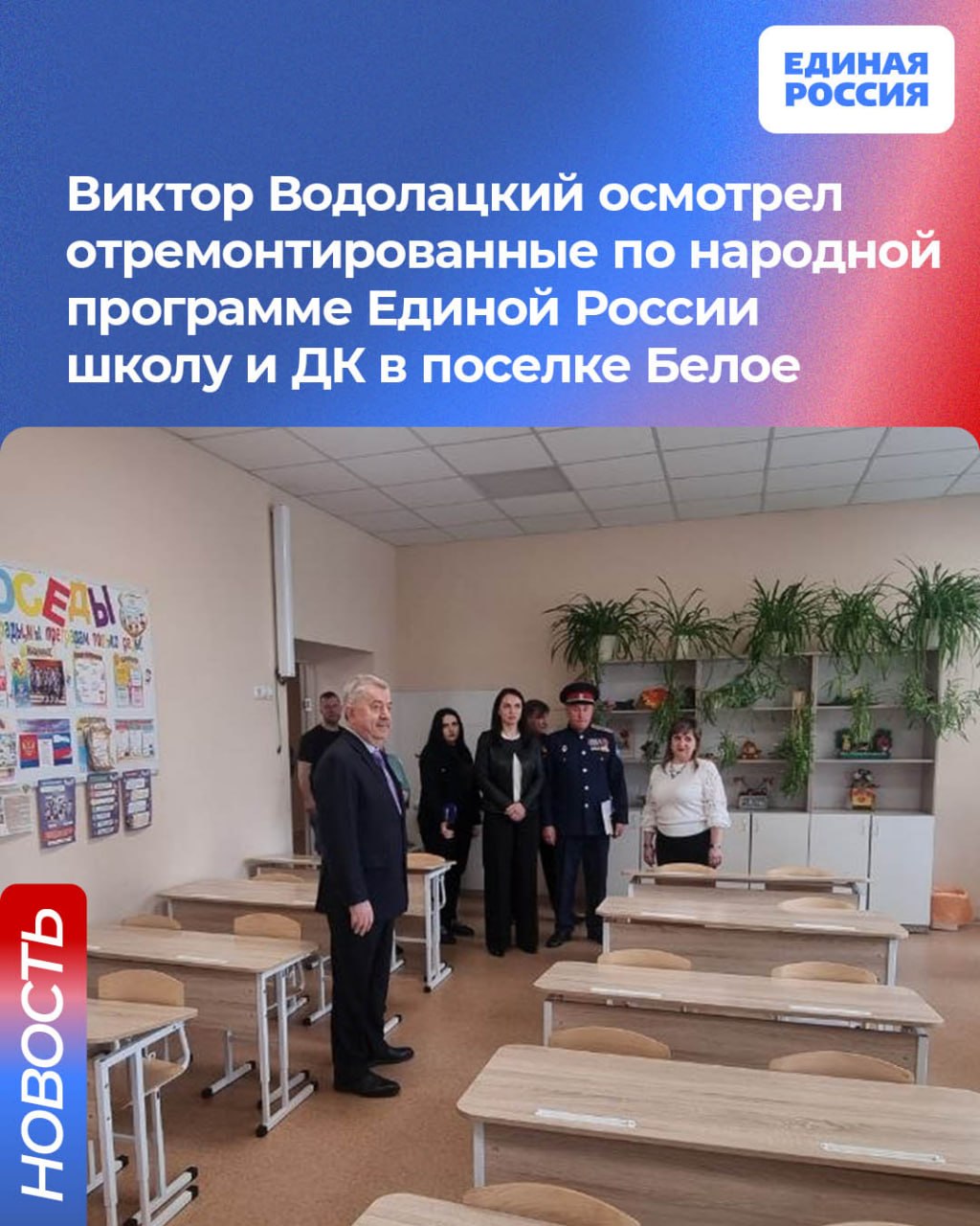 Виктор Водолацкий осмотрел отремонтированные по народной программе Единой России школу и ДК в поселке Белое