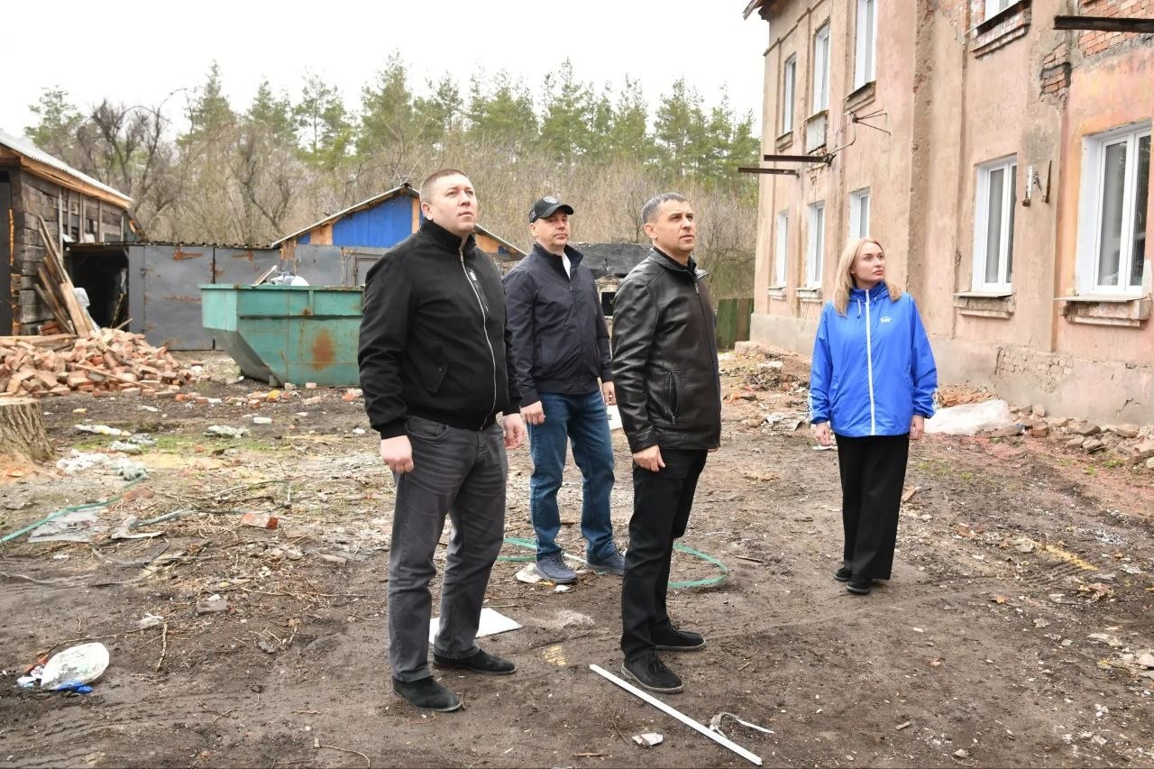Единороссы провели инспектирование хода работ по восстановлению дома на ул. Новодолжанская, пострадавшего в результате удара ВСУ