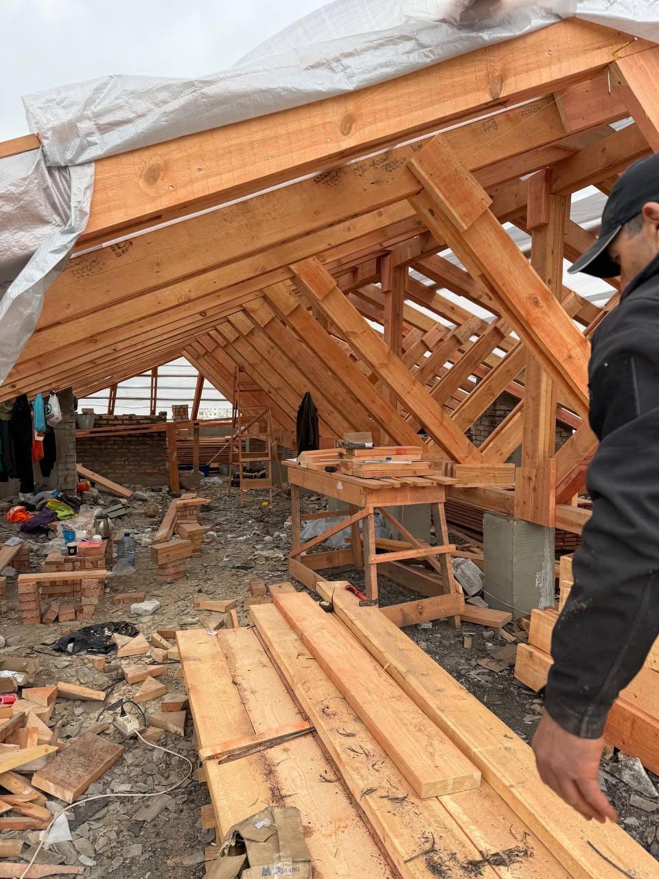 Специалисты уже завершили работы по устройству парапетов, путем устройства кирпичной кладки, выполнили монтаж стропильной системы и смонтировали паро-гидробарьер на кровле первого подъезда. Продолжают работы на кровле 2 и 3 подъездов: выполнили демонтажные работы дымовентканалов, а также устройство мауэрлата для последующего монтажа стропильной системы.