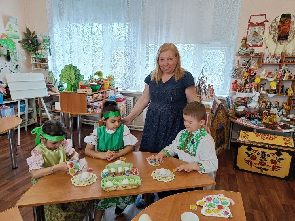 Народный мастер научила малышей «Ивушки» украшать пасхальные яйца