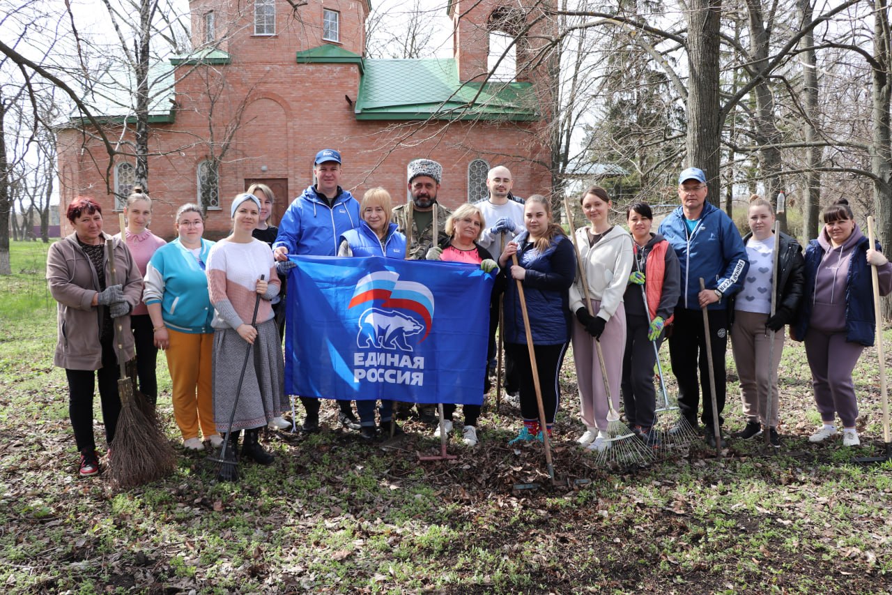 Единороссы Станично-Луганского муниципалитета провели субботник возле храма Святой Варвары в с. Широкий