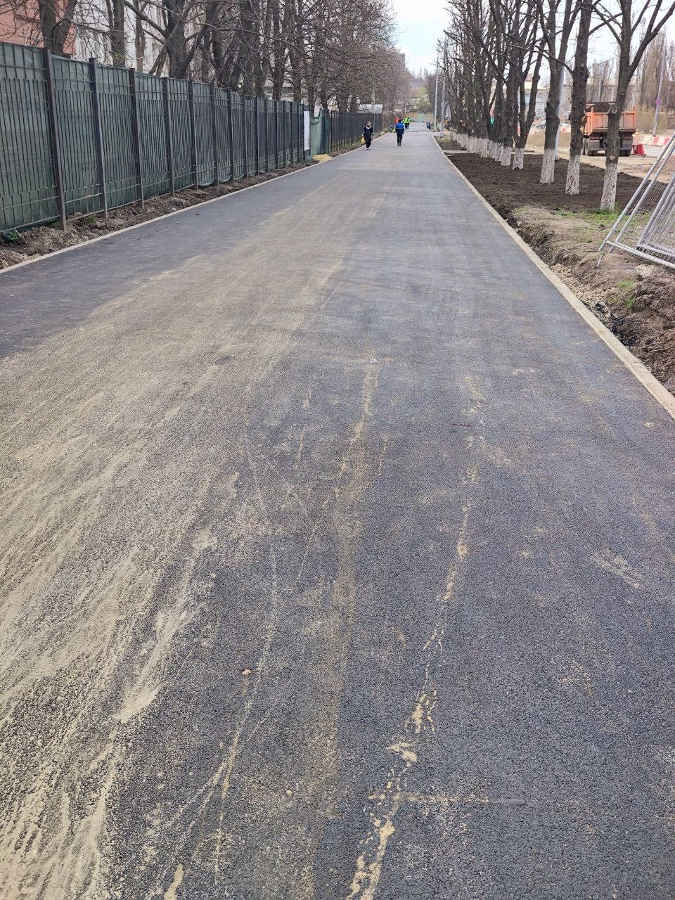 Также продолжают асфальтировать проезжую часть и завозят землю под газоны.