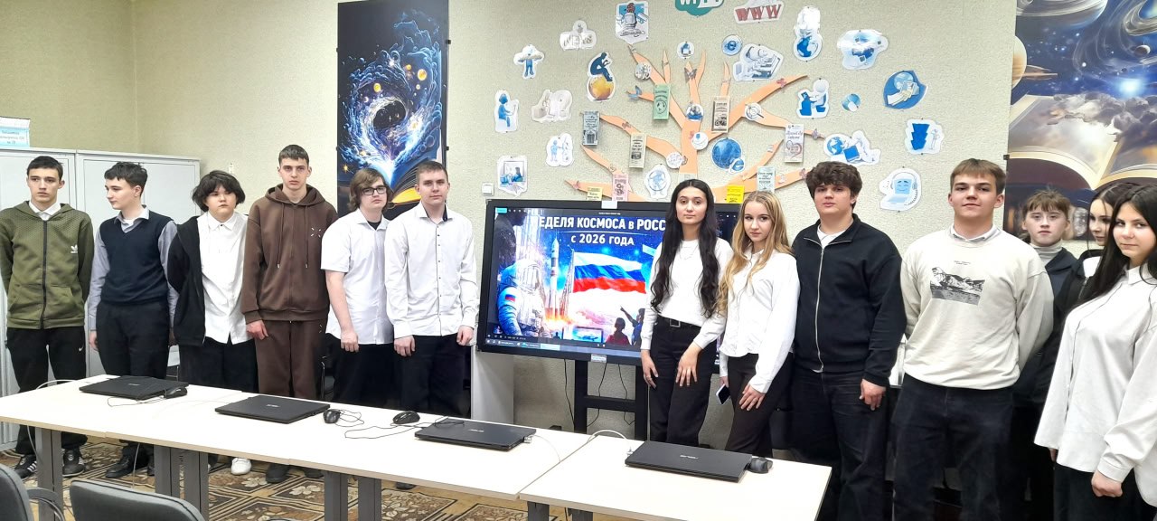 Для ребят прошёл час космонавтики «Космические вехи: от первого спутника до МКС». Школьники узнали об основных этапах освоения космоса, проверили знания в викторинах, посмотрели трансляцию запуска корабля «Прогресс МС-33» который проходил 22 марта 2026 года (можно посмотреть, перейдя по ссылке https://www.roscosmos.ru/45008/), а также совершили виртуальную прогулку по Вселенной в планетарии библиотеки.